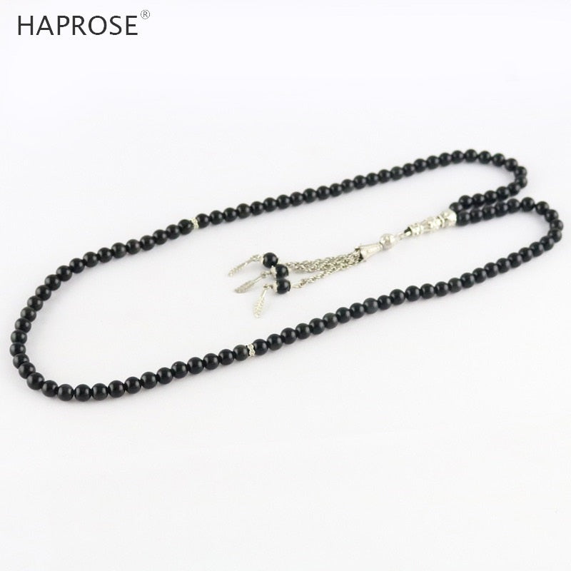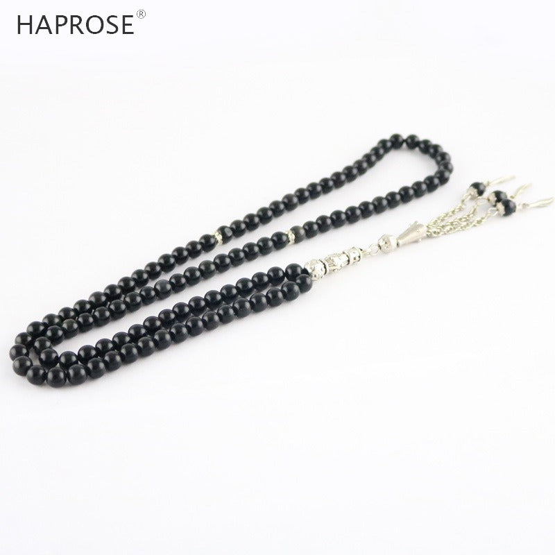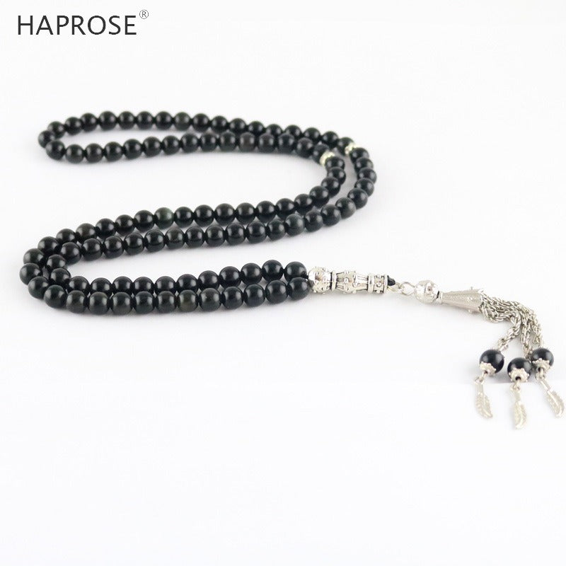 100% Natural Obsidian Prayer Bracelet Islamic Muslims Tabbih Allah Rosary obsidian Bracelet 99 Beads 6-10mm obsidian Necklace