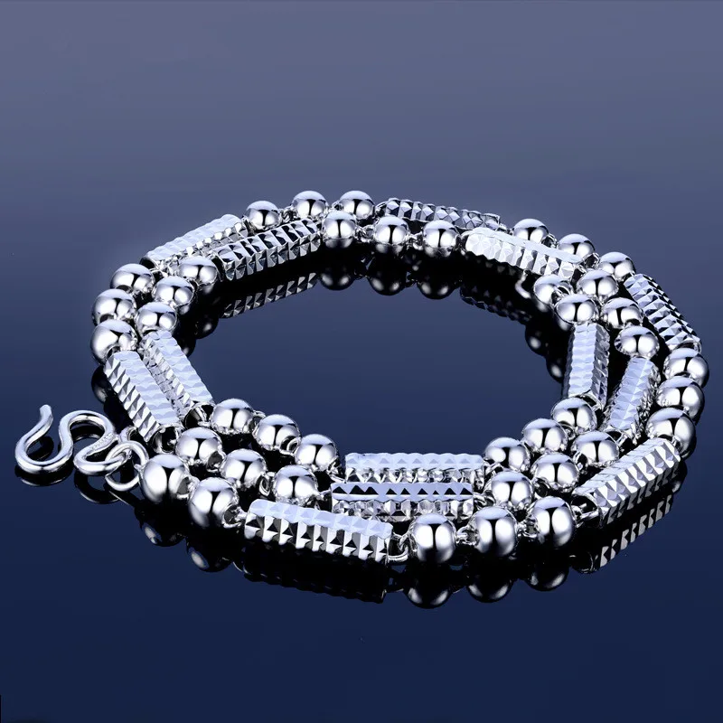 100% Sterling Silver Necklaces Hexagonal Beads Men'S Charm Necklace Silver Chain Jewelery 55CM