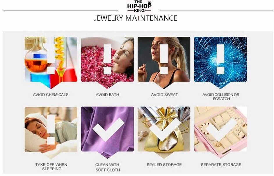 Jewelry Care: Please avoid direct contact with water, perspiration, and chemicals such as perfume, detergent, and lotion. Excessive light, heat or moisture, which will deteriorate the quality of the plating on the metal. Also, exposing plated jewelry to liquids will cause the plating to lose its finish. Please take care to protect your bling as you would have most blinging jewelry