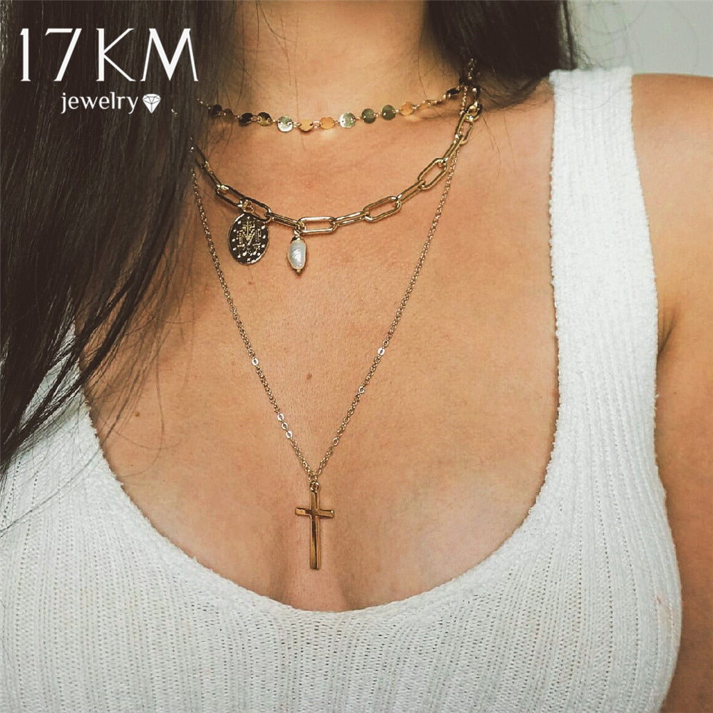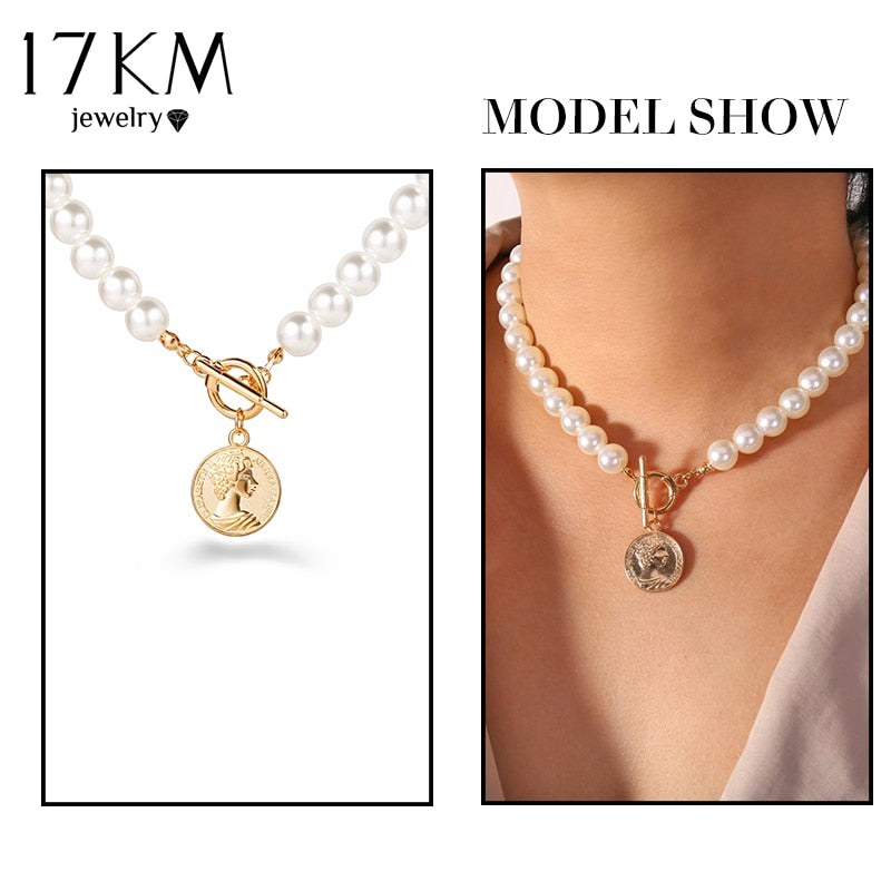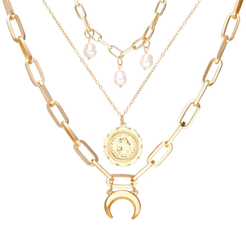 Bohemian Gold Necklaces For Women Multilayer Fashion Pearl Pendants Necklace Portrait Chokers 2020 Trendy New Jewelry Gift