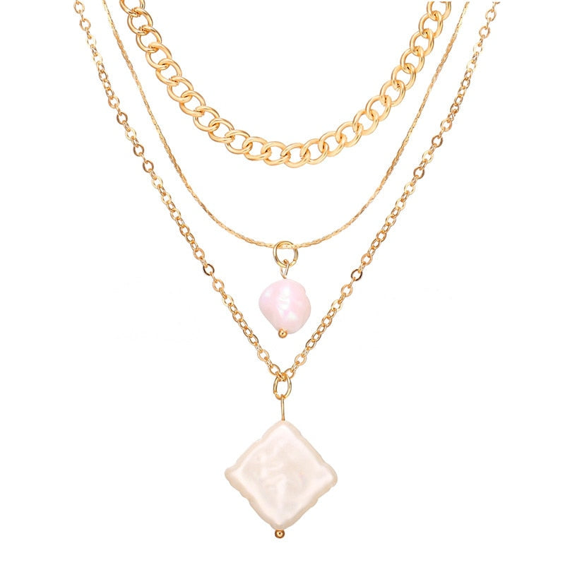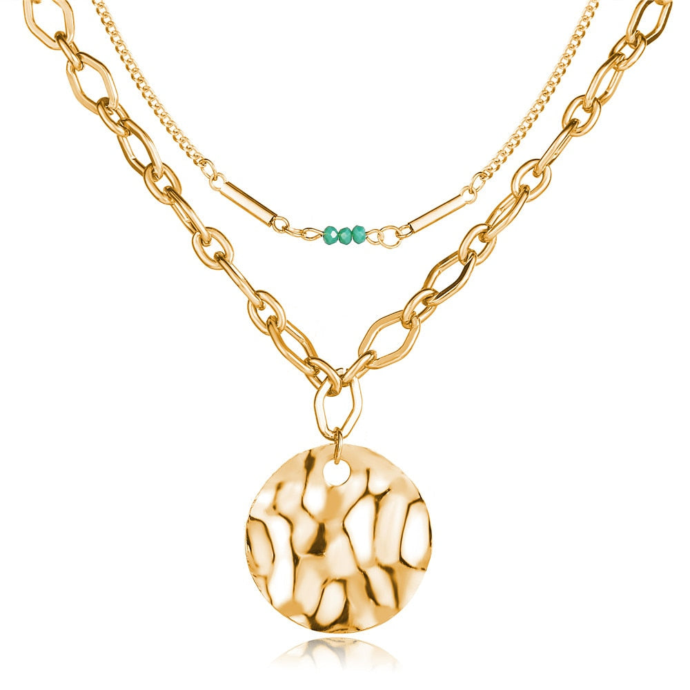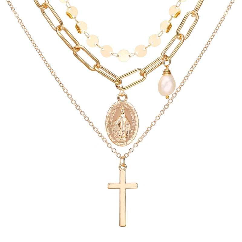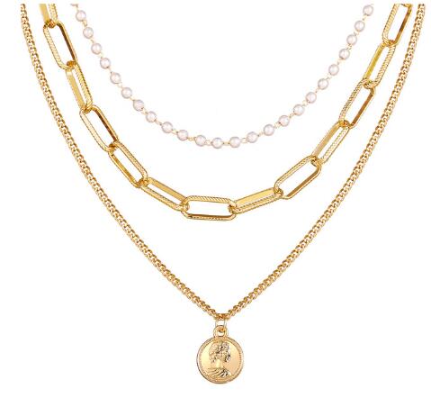 17KM Fashion Multi Layer Lock Portrait Pendants Necklaces For Women Gold Metal Key Heart Necklace New Design Jewelry Gift