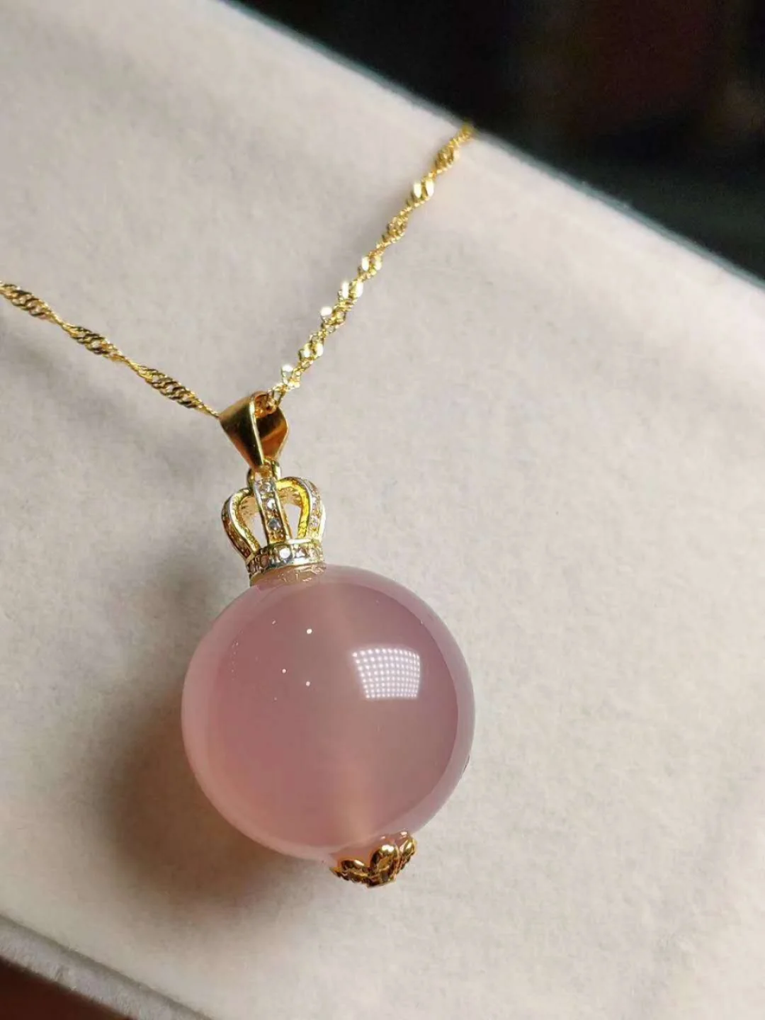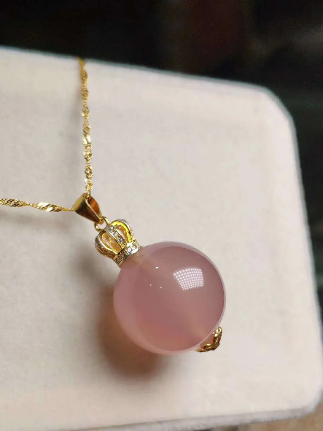18K Gold Inlaid Natural Chalcedony Buddha Pendant Necklace
