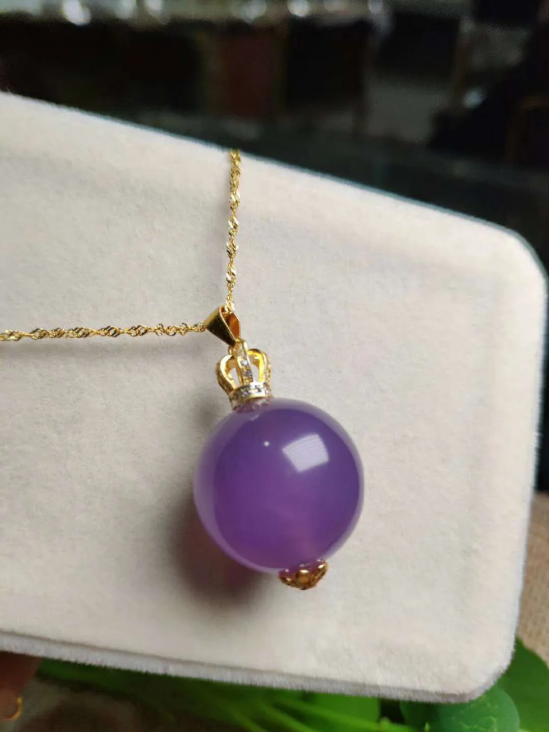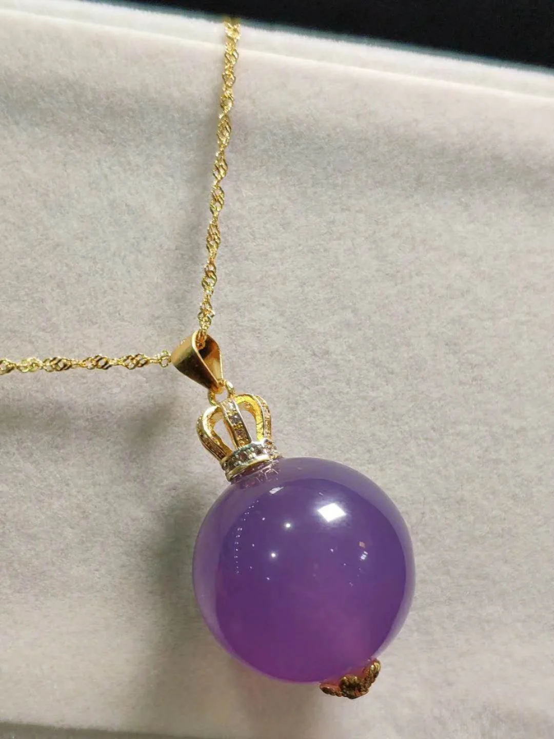 18K Gold Inlaid Natural Chalcedony Pendant Necklace