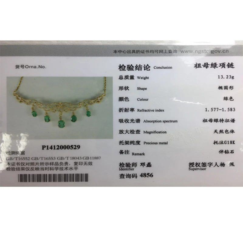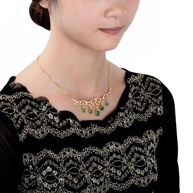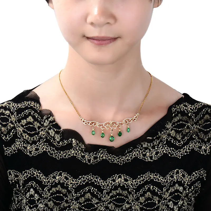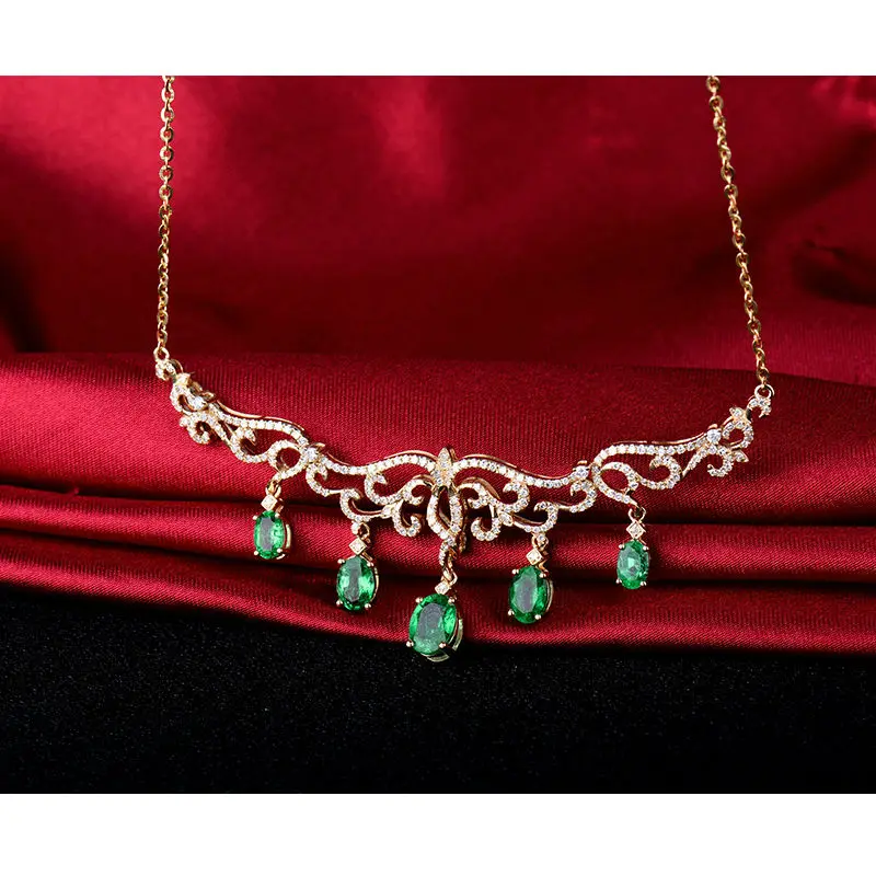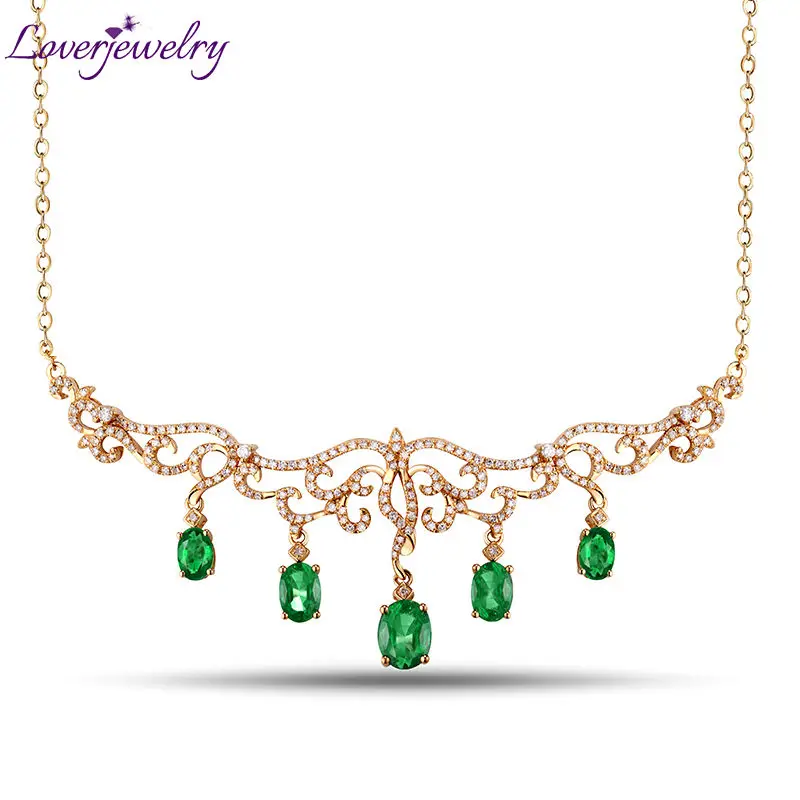 Collana con ciondolo con smeraldo verde naturale in oro giallo massiccio 18 carati dal design di lusso caldo, gioielli con diamanti per le donne
