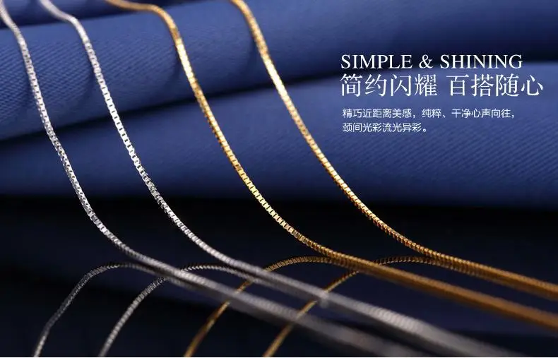 18K Gold Box Chain Necklace for Women Solid Rose Yellow White Gold Party Engagement Handmade Fashion Fine Jewelry