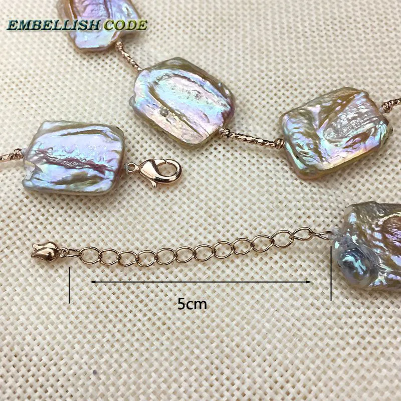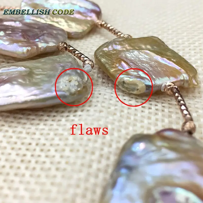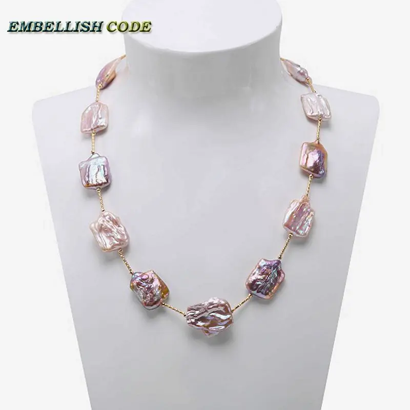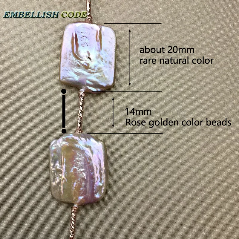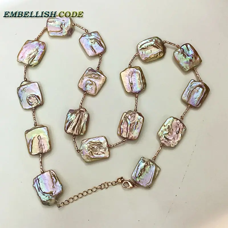 2018 new big size baroque pearl peach or purple statement necklace square flat shape natural pearls rose golden beads
