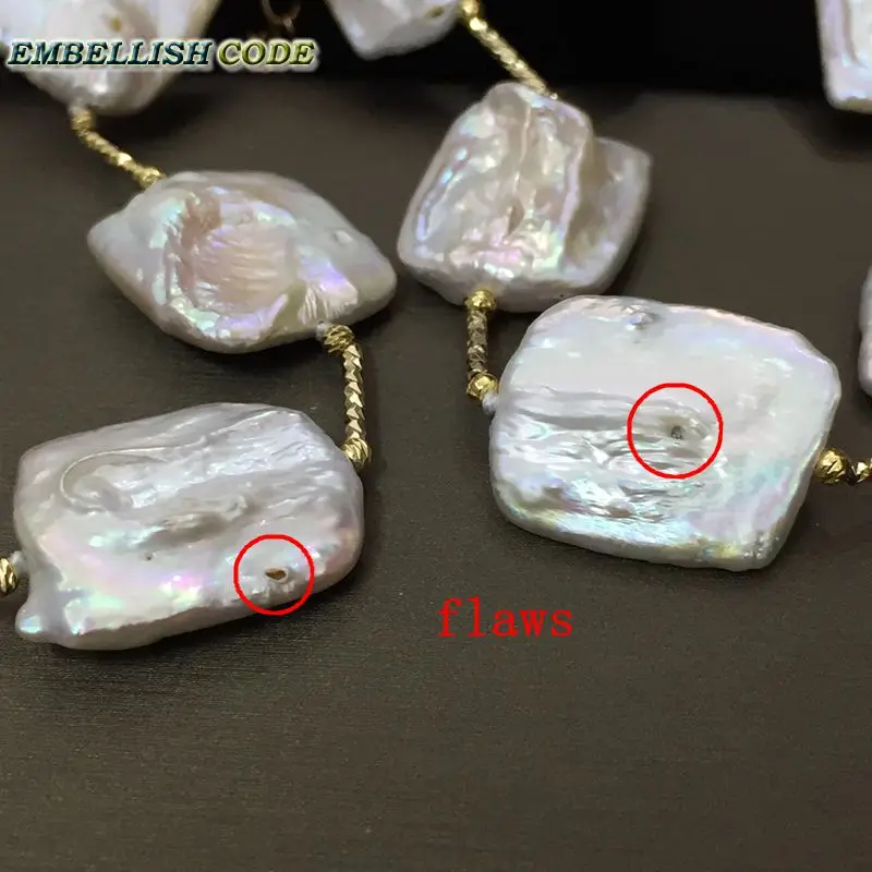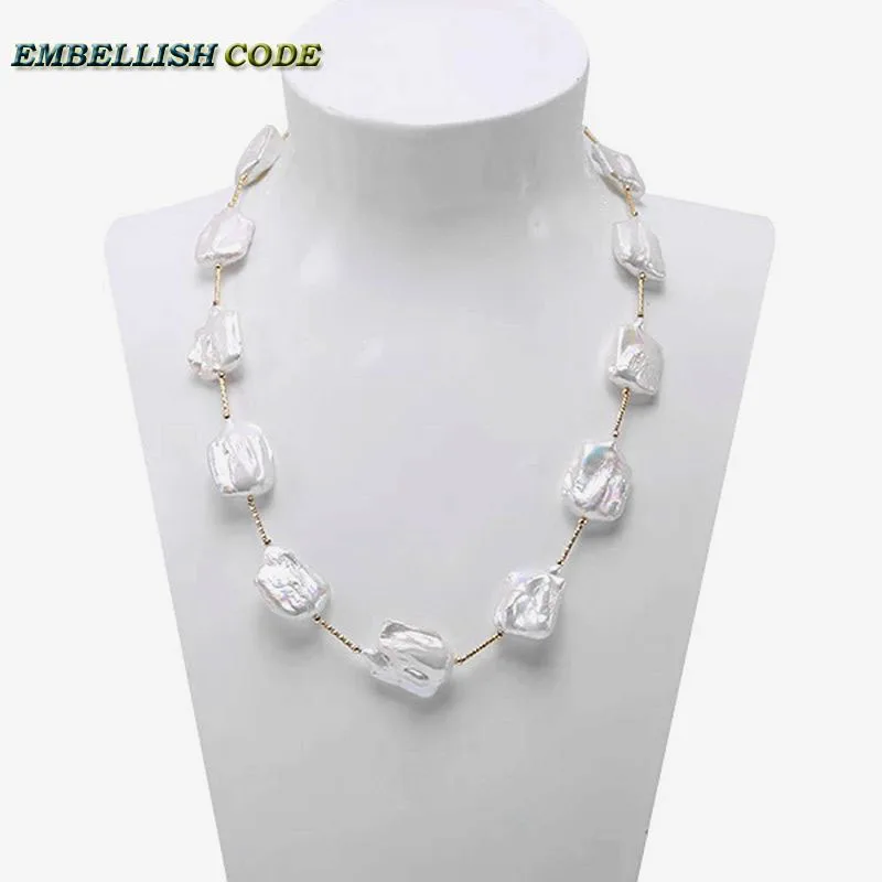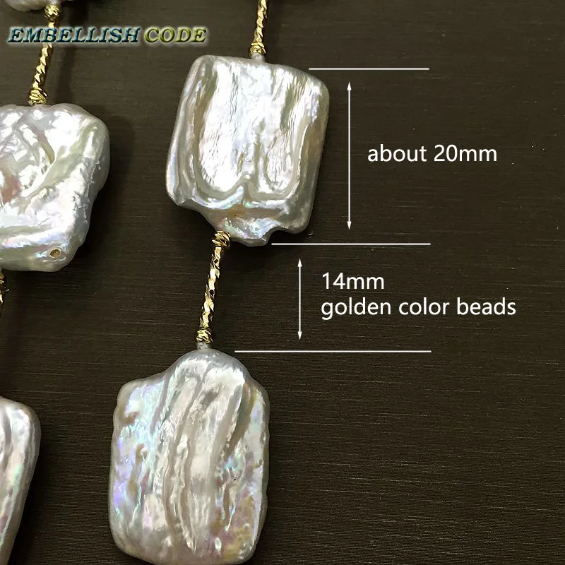 2018 nuova collana di grandi dimensioni con perle barocche bianche, collana di perle quadrate a forma piatta, perle naturali, tubo di perle dorate