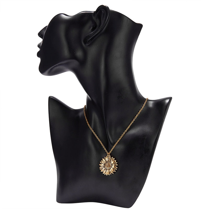 2019 New Gold Necklaces Women Fashion Jewelry Letter Engraved Open Locket Sunflower Pendant Necklaces Women Girl Birthday Gift