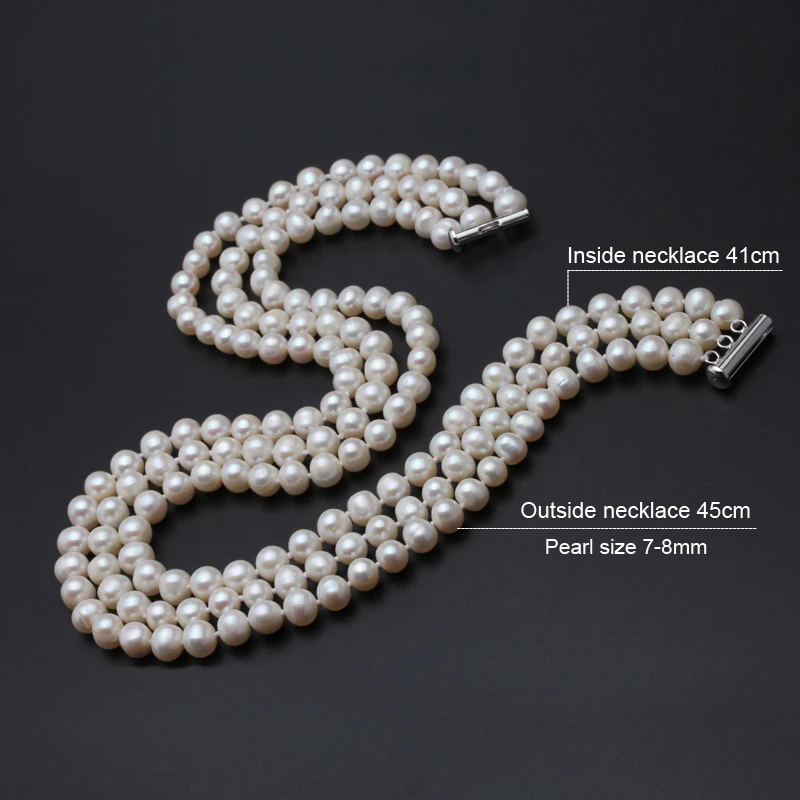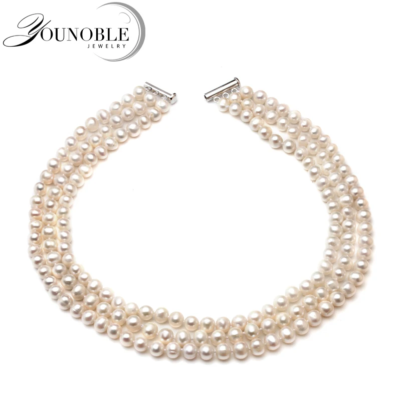 Collana da donna con 3 file di perle naturali da sposa, collana girocollo con perle multistrato regalo di nascita per la madre, gioielli in argento 925