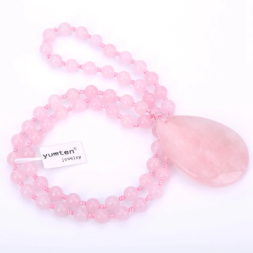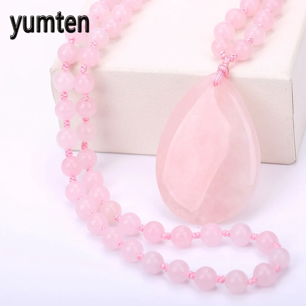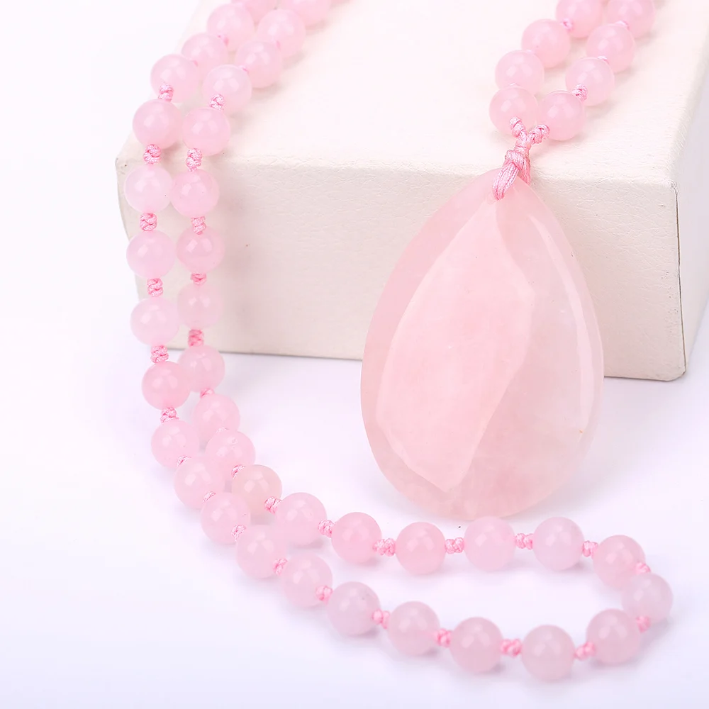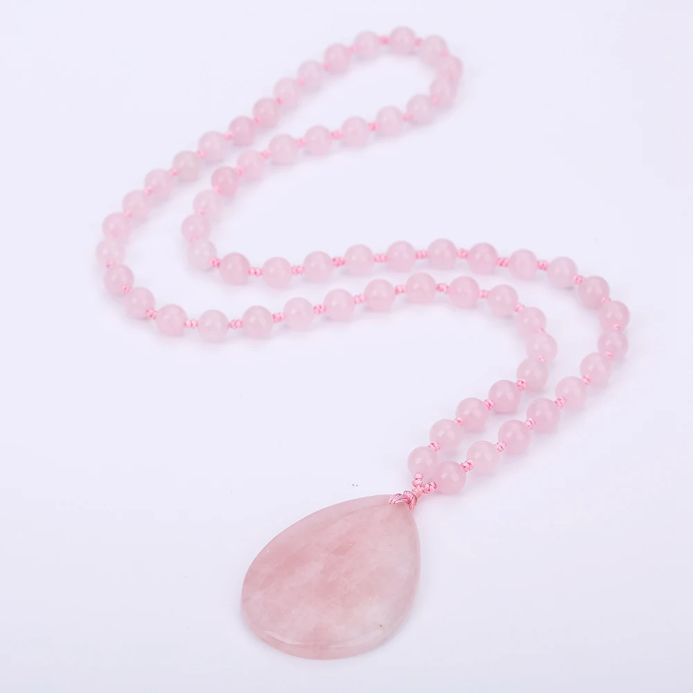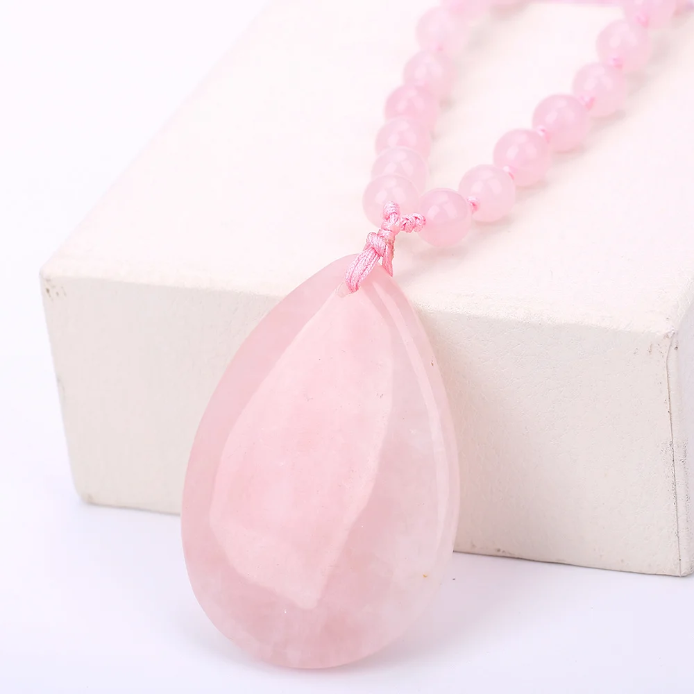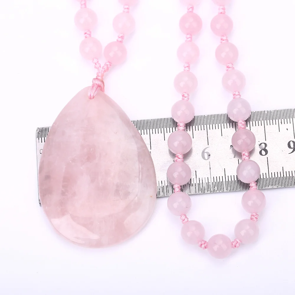 4*6 cm Cristallo Di Quarzo Naturale Giada Rosa Goccia D'acqua Collane Pendenti Con Gemme E Perle Colgantes Mujer Moda Point Healing Wand Maglione catena Regalo
