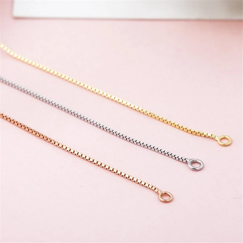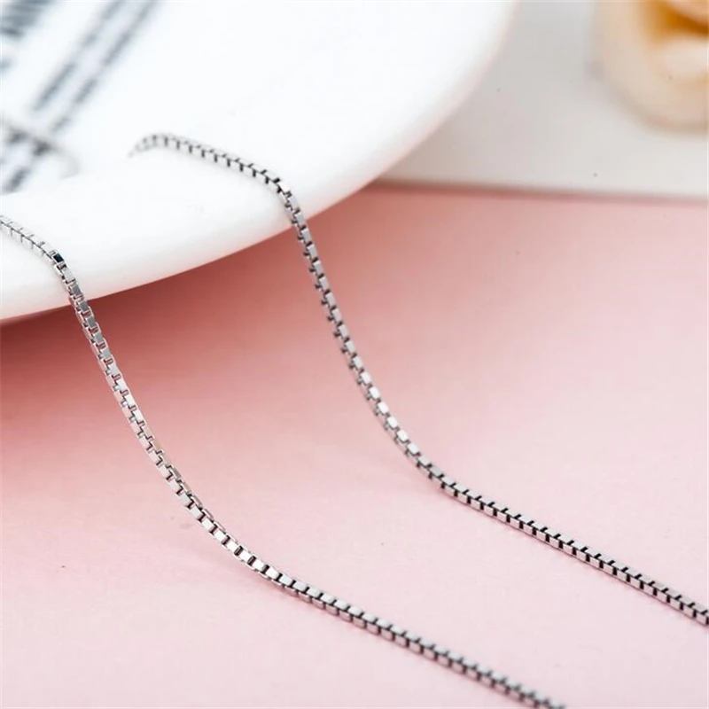 45CM 925 Sterling Silver Box Link Chain Necklaces for Women DIY Necklaces Trendy Sterling-Silver-Jewelry Brand SSN002
