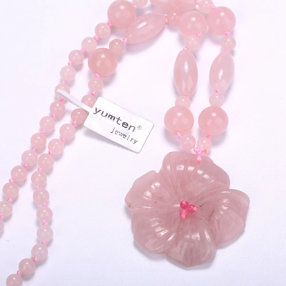 Collane girocollo in pietra naturale con pietre preziose di moda 5 * 5 cm per donna Collana con ciondolo in cristallo rosa Collana con gioielli intagliati in calcite