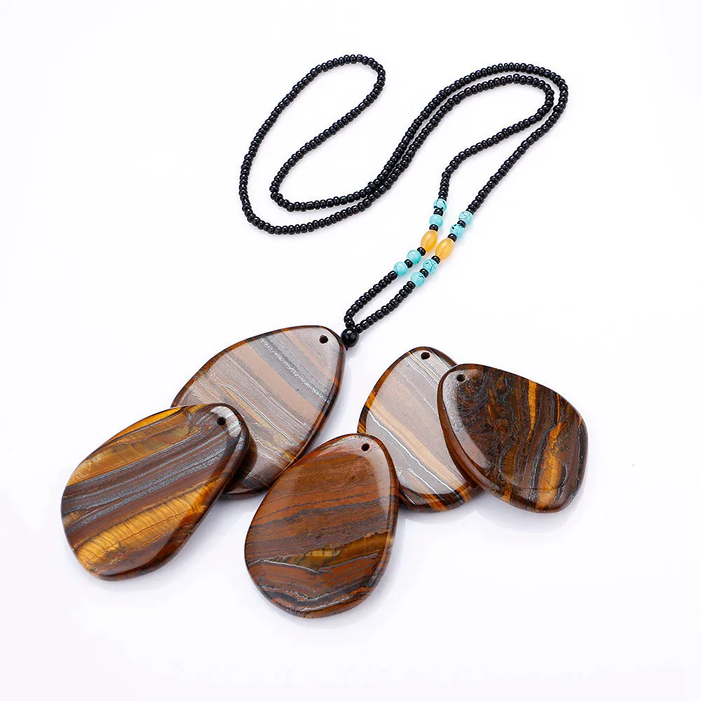 70cm Necklace Tiger Eye Large Pendant Rectangular Natural Stone Women Men Jewelry Long Necklace Reiki Chakra Healing Lucky Ge