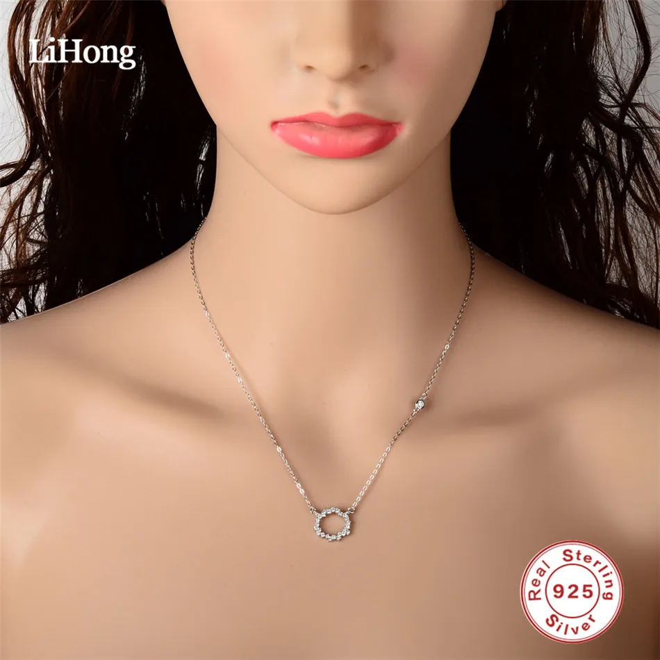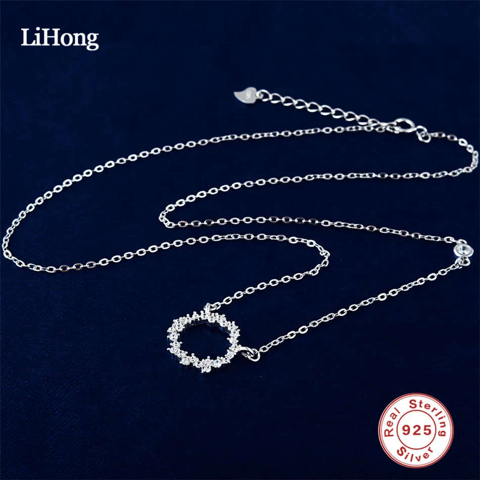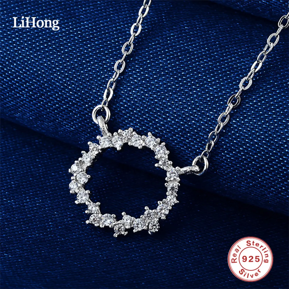 Collana in argento sterling 925 a forma rotonda con zirconi semplici collane con ciondolo per gioielli da donna Bijoux