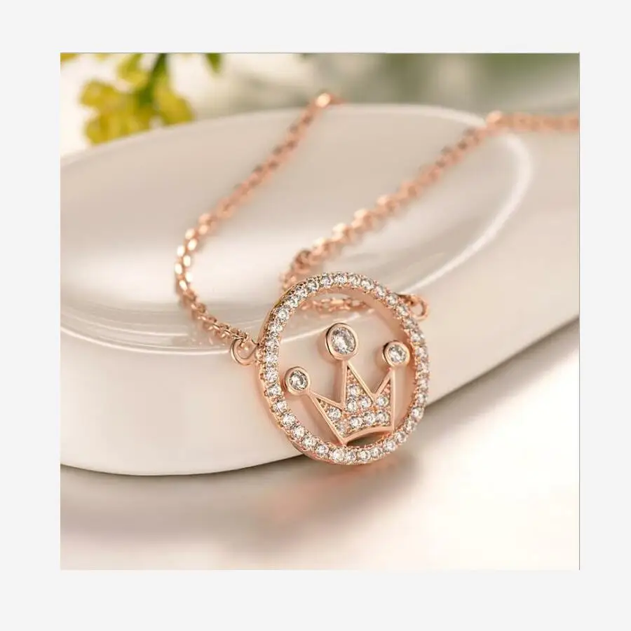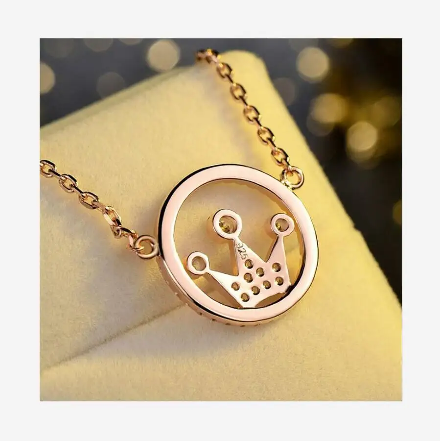 925 sterling silver rose gold fashion crown necklace female fashion jewelry J0276