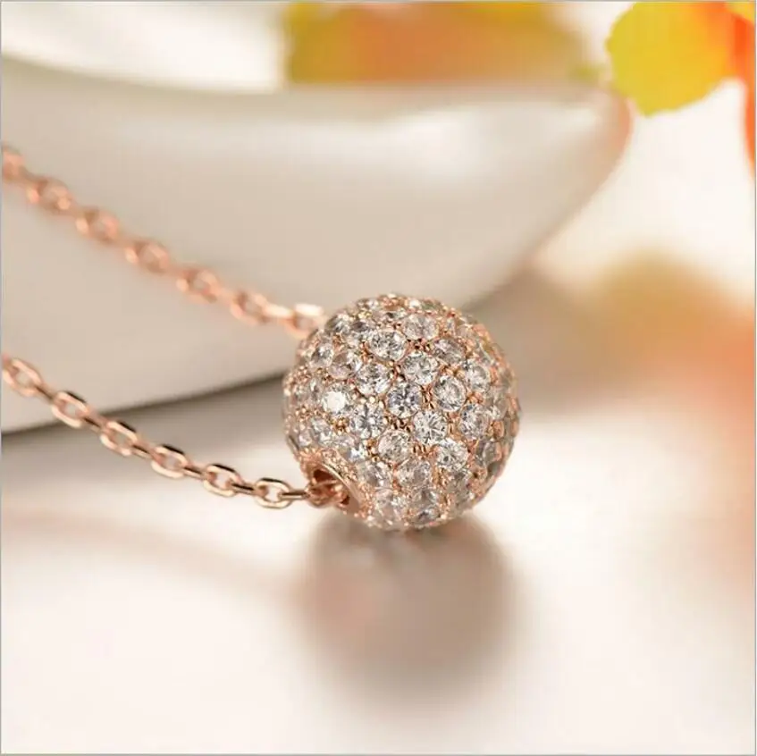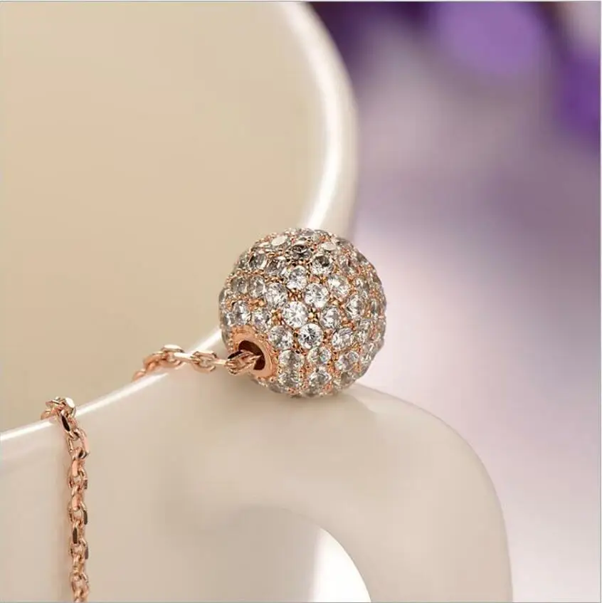 925 sterling silver rose gold transfer beads zircon necklace female fashion jewelry J0216