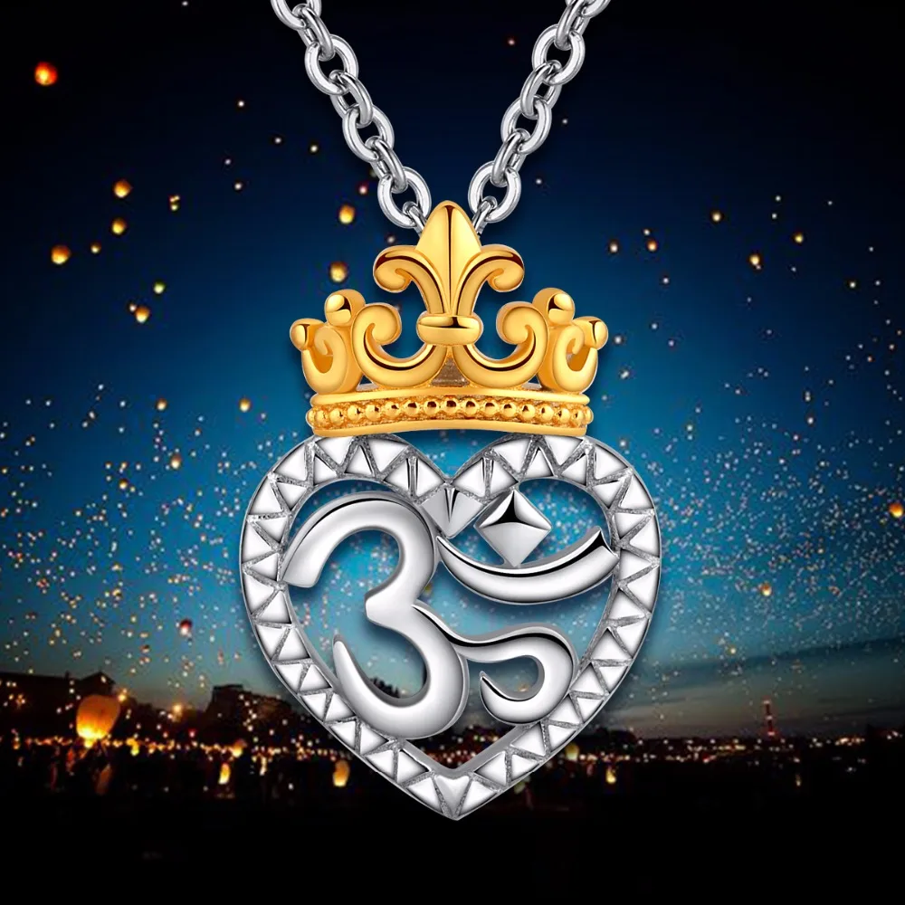 925 Sliver Golden Crown Heart Necklace &Pendant Mysterious Symbols Choker Fine Jewelry for Women Birthd D Gifts