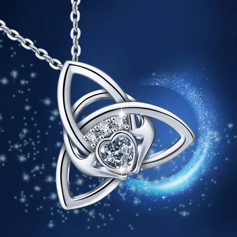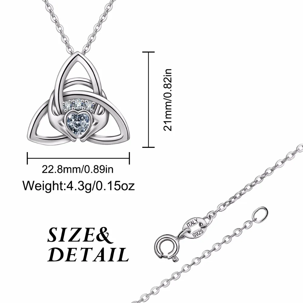 Collana con ciondolo Claddagh in argento sterling 925 Tiquetra Trinity Knot CZ Girocollo in cristallo Fine Jewelry per regalo di nozze