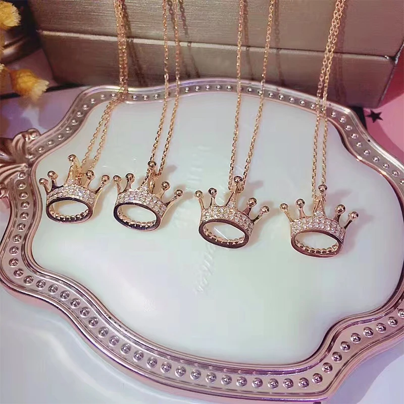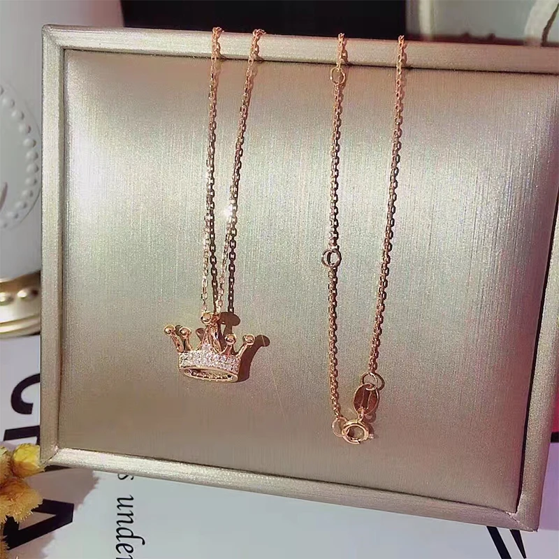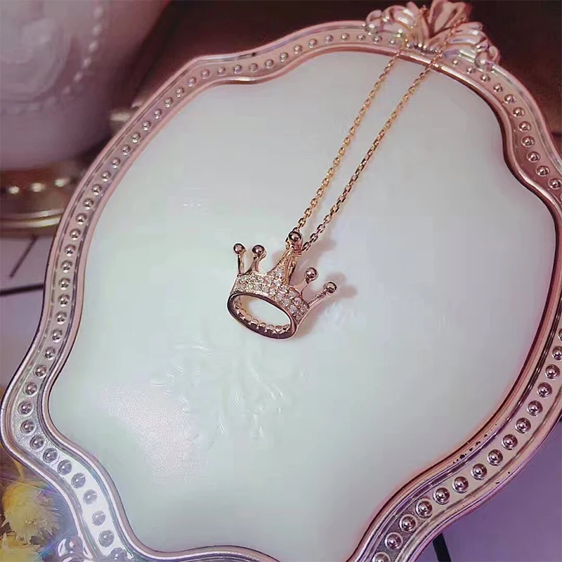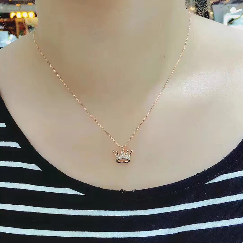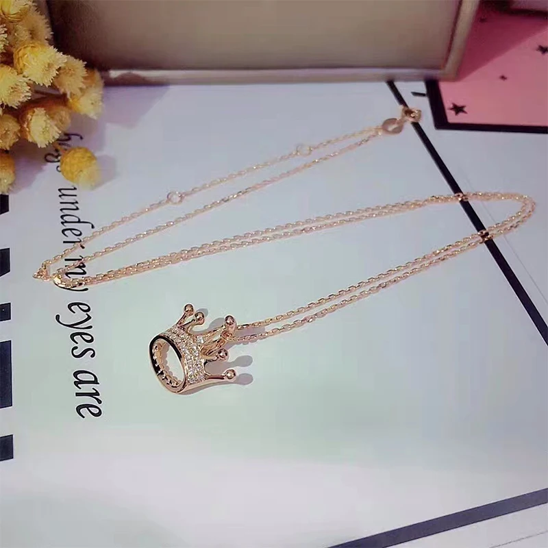 ANI 18K Rose Gold (AU750) Pendant Necklace 0.094 ct Real Diamond Jewelry Crow Shape Princess Pendant for Women Engagement Gift