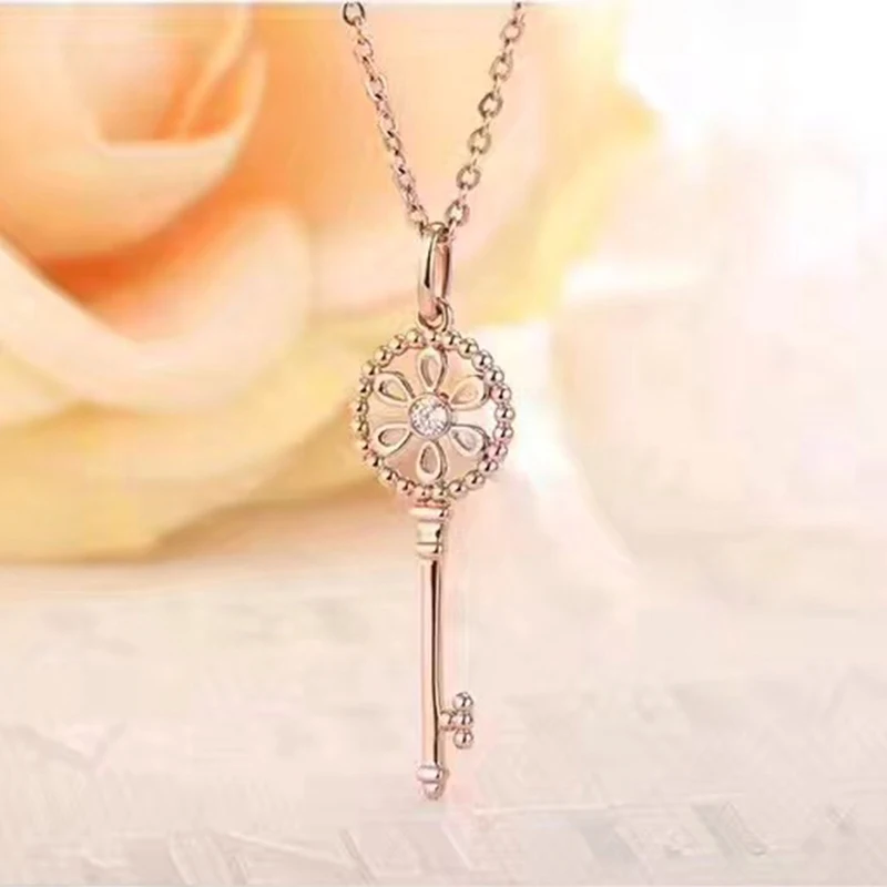 ANI 18K Rose Gold (AU750) Pendant Necklace Real Diamond Jewelry Custom Key Shape Chain Necklace for Women Engagement Birthday