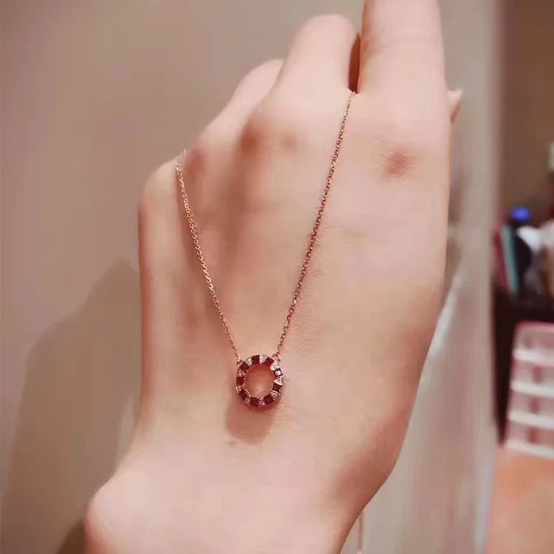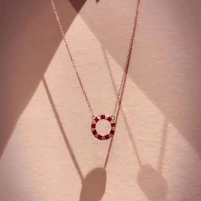 ANI 18K Rose Gold (AU750) Pendant Necklace Natural Ruby Fine Jewelry Women Engagement Necklace Fashion Design Birthd Gift