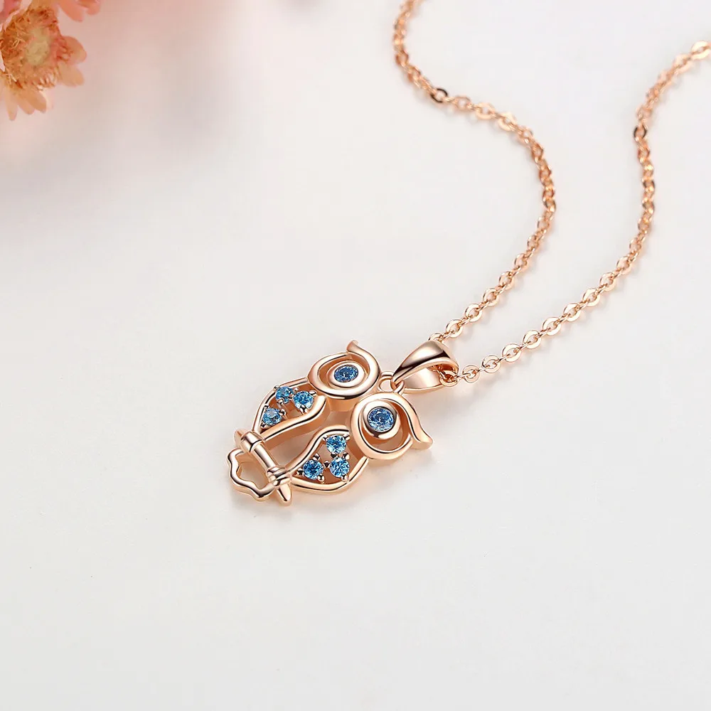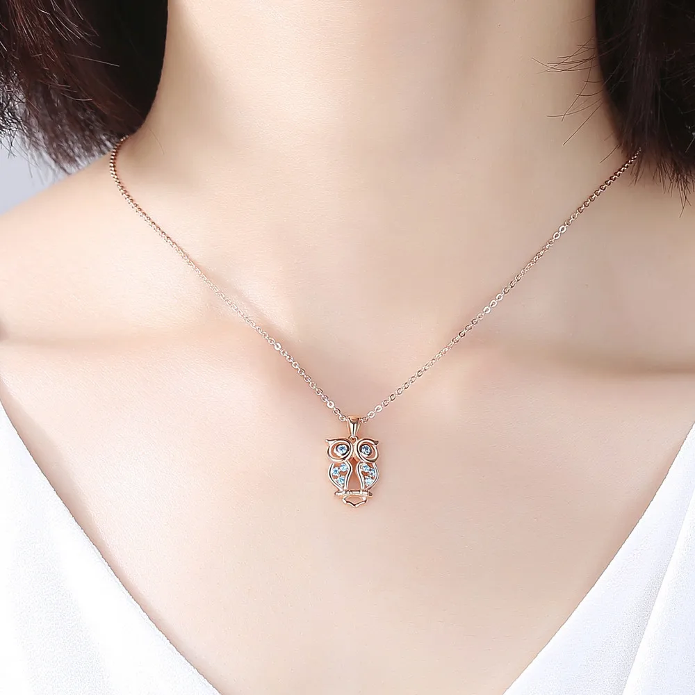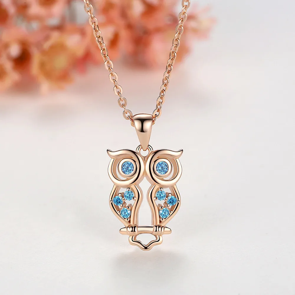 Autentica collana con gufo animale carino in argento sterling 100% 925. Collane con pendenti e collane con piccola aquila per un regalo elegante per la nascita della signora
