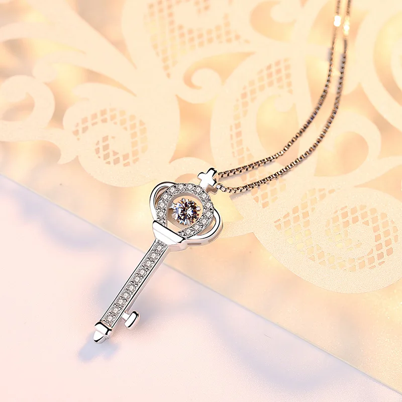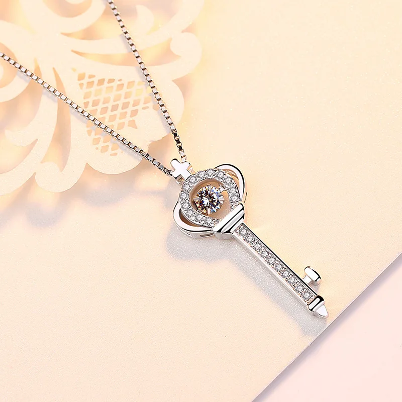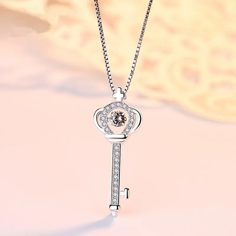 Autentica collana in argento sterling con chiave a corona, ciondolo in zircone AAA, catena in argento, moda donna, gioielli con fascino