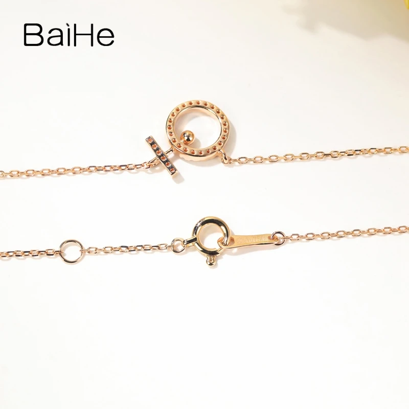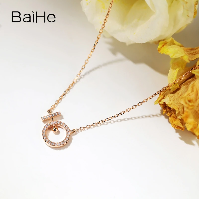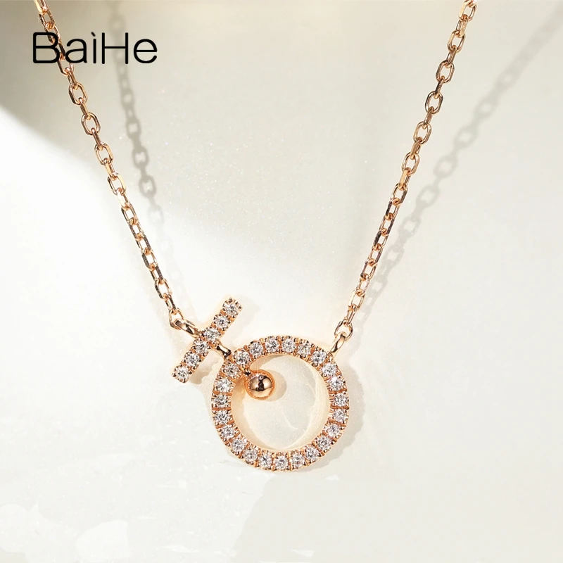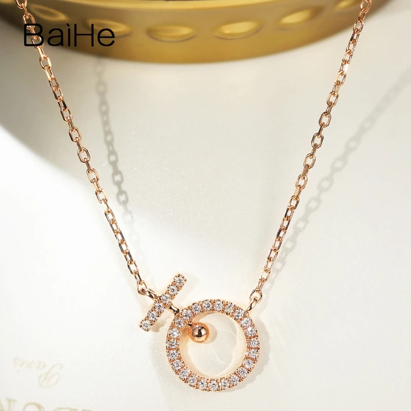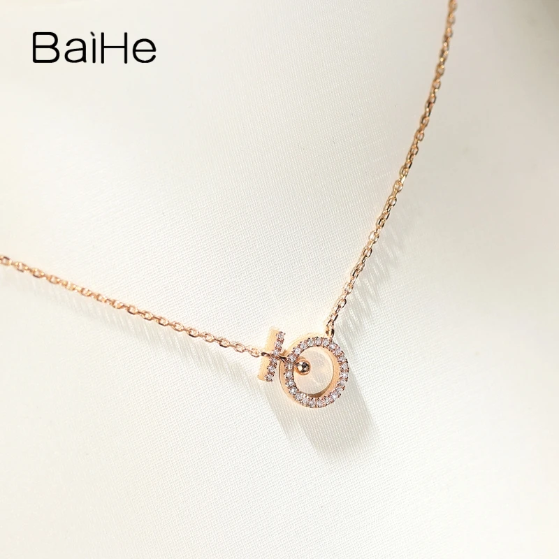 BAIHE Solid 18K Rose Gold 0.08ct Certified F-G/SI Round Cut 100% Genuine Natural Diamonds Women Wedding Fine Jewelry Necklaces