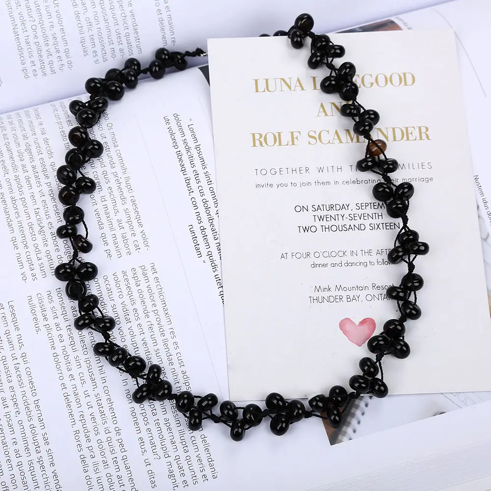 Collana tessuta in agata nera Catena in cristallo di pietra naturale Collana di gioielli da donna sexy popolare Game of Thrones Collare con manubri in acciaio