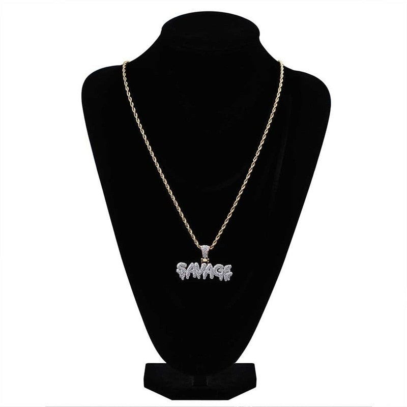 Bling Bling Savage Letter Necklace & Pendant Shiny Ice Out Link Chain Necklace With Tennis Chain Choker Hip Hop Jewelry For Men