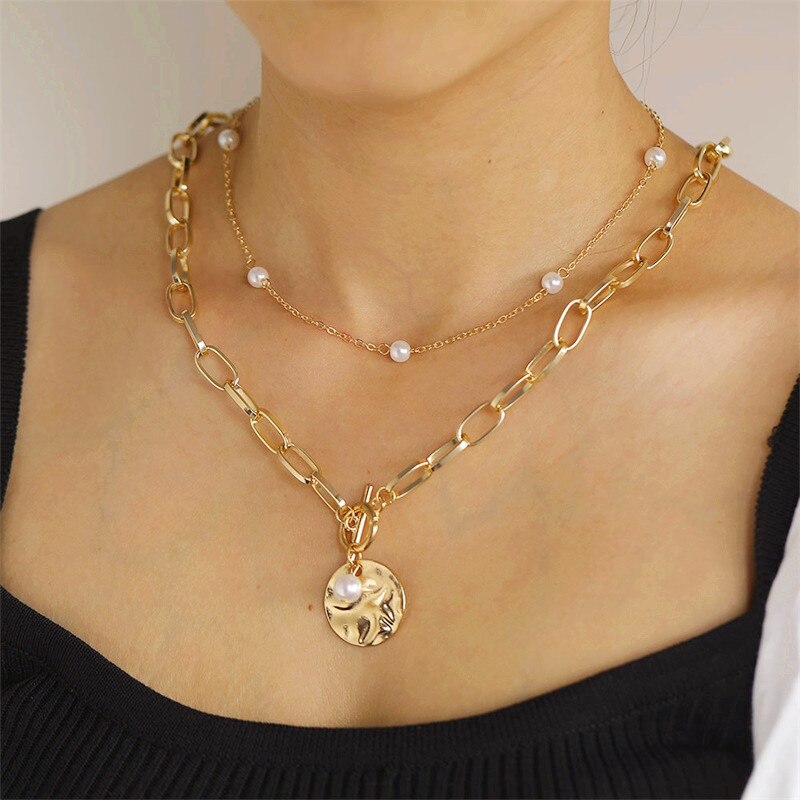 Fashion Moon Circle Map Pendant Necklace for Women Jewelry Earth Choker Multilayer Bijoux Collares Mujer Collier Femme