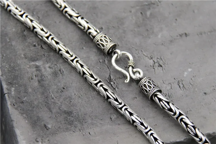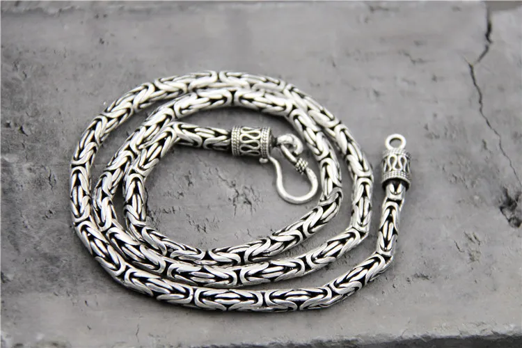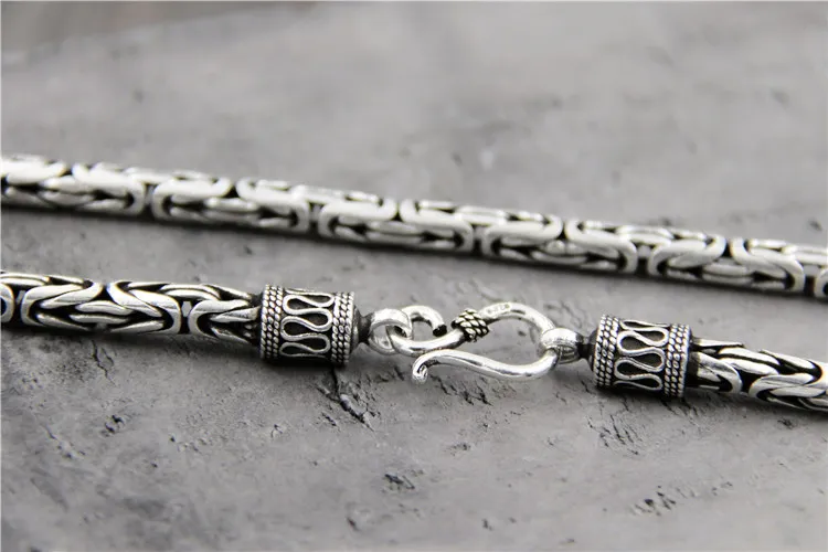 C&R Real 925 Sterling Silver Necklace 5mm width Retro Personality Men's link chain Necklace Thai Silver Fine Jewelry