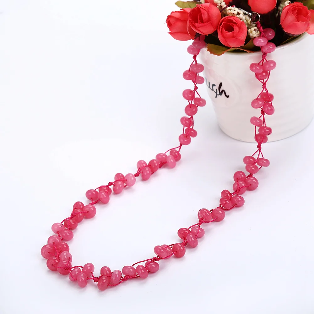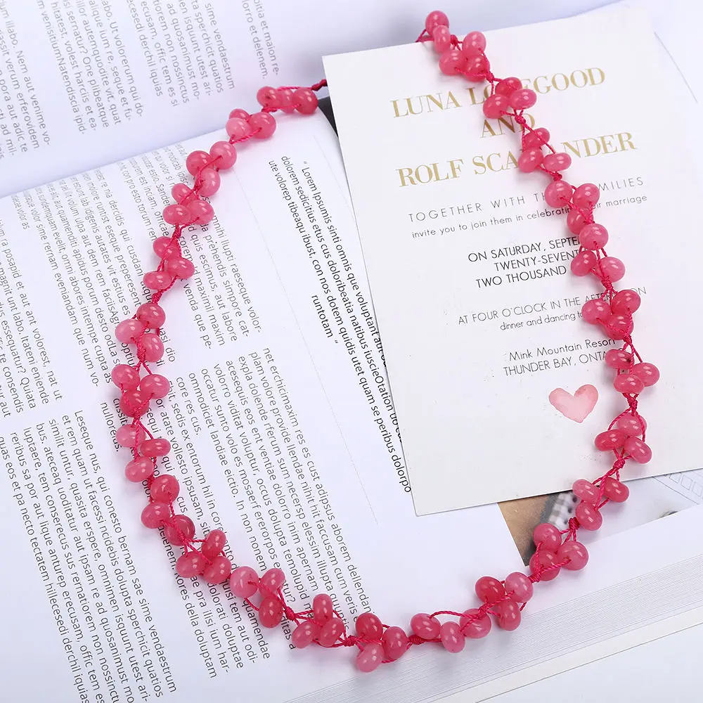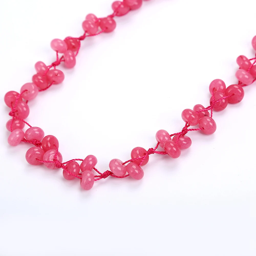 Collana intrecciata di calcedonio Pietra naturale Perline di cristallo rosa Collana da donna Girocollo Collana personalizzata con perle con lettera di diamanti a strati