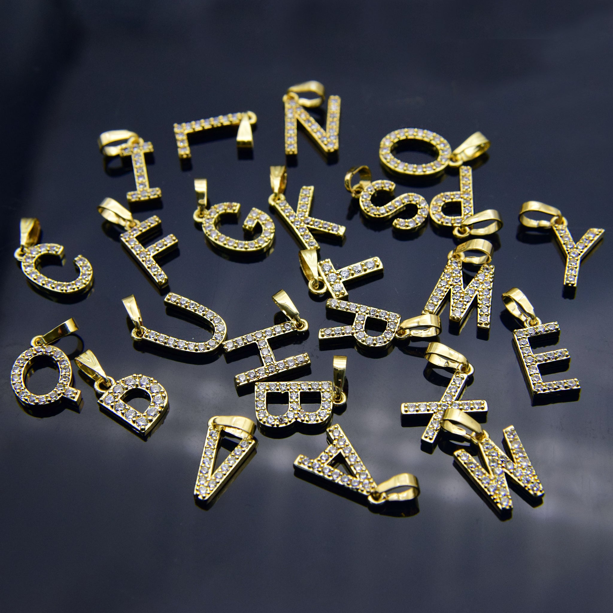 Cubic Zircon Alphabet Pendants Gold Silver Color Copper Mini A-Z Letter Pendant Necklace Shinning 26 Initial Collares Jewelry