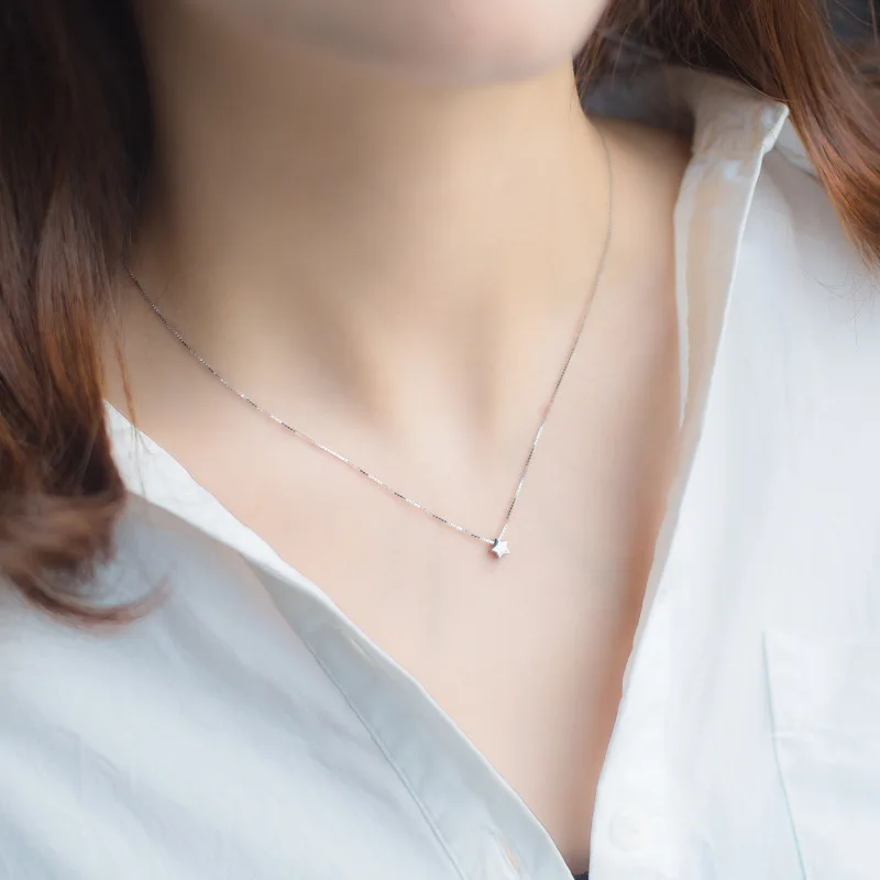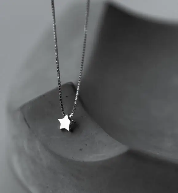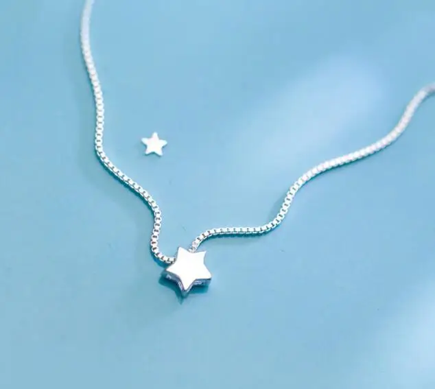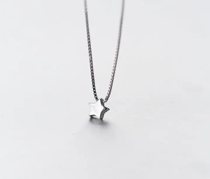 Cute women's Real. 925 Sterling Silver Jewelry Polished small /tinny star Necklace Pendants 5mm charm GTLX1192