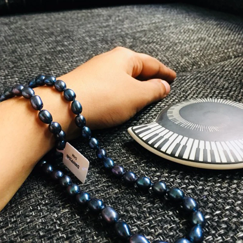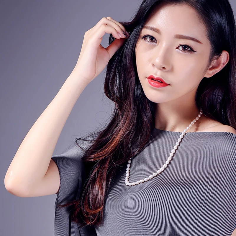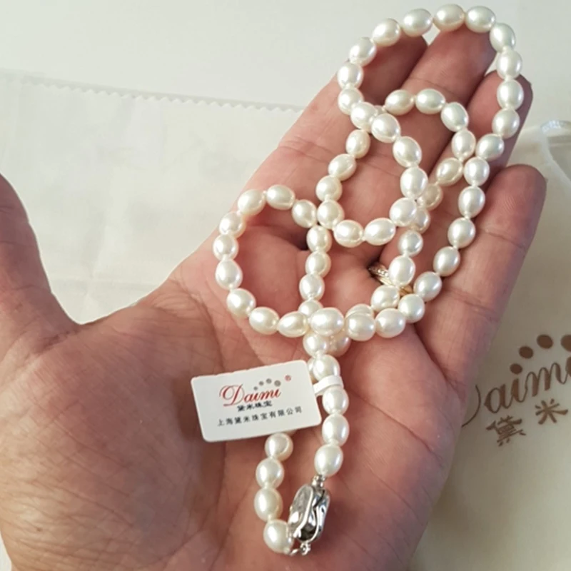 Long Necklace Cultured Pearl Necklace 6-7mm Rice Pearl Necklaces for Big Neck Anniversary Gift White Black Color