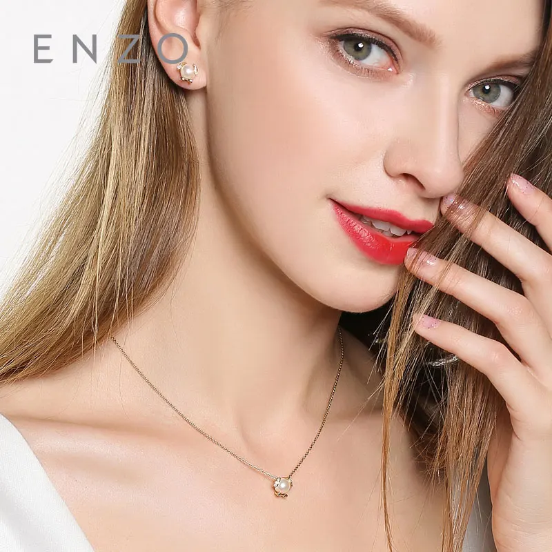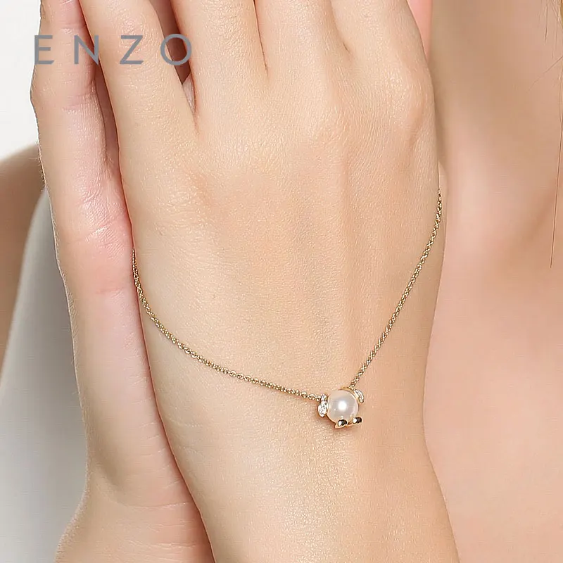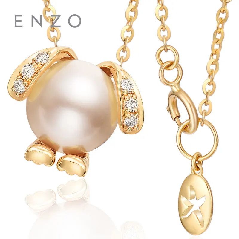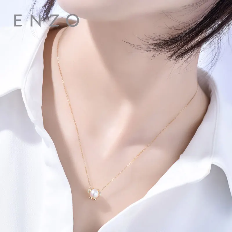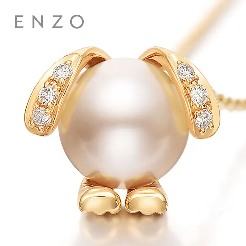 1.85CT Akoya Pearl Necklace with 0.03 Ct Diamond 18K Yellow Gold Natural Gemstone Lovely Animals Puppy
