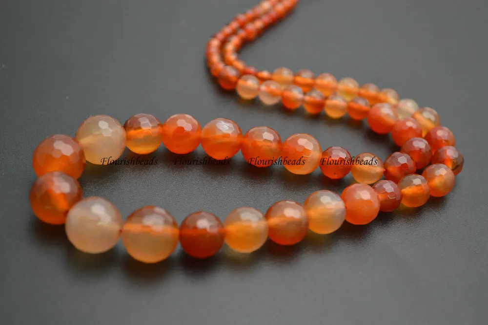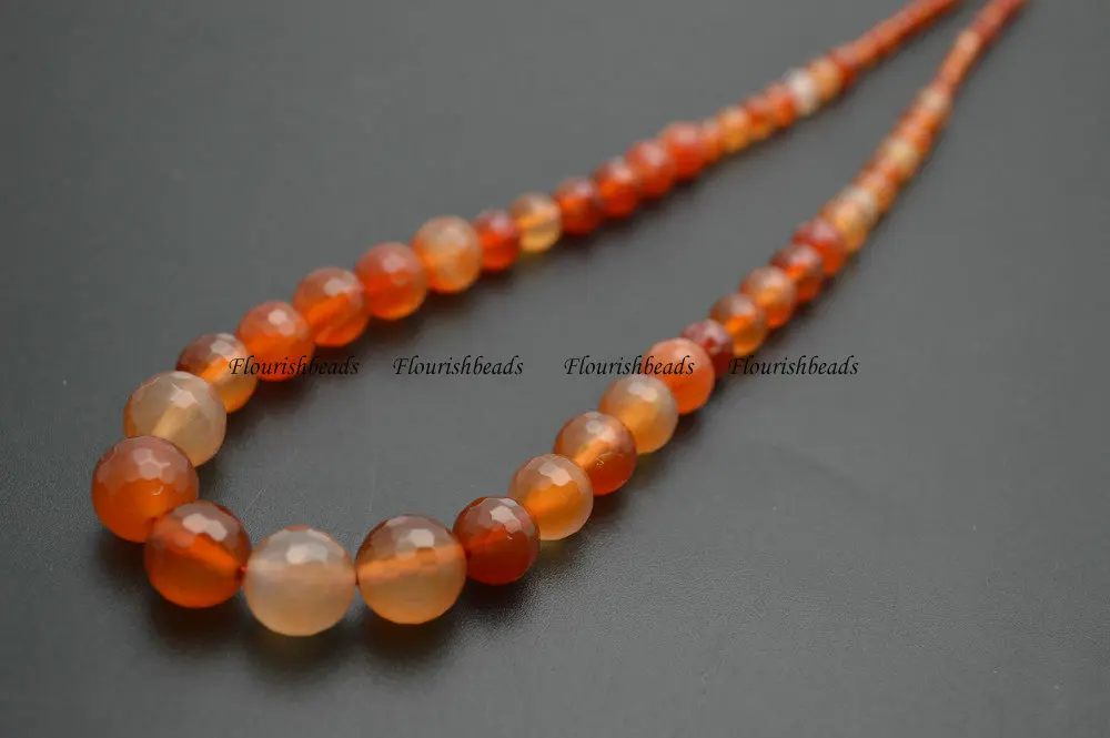 Faceted Red Carnelian Agate Round Beads Graduated 4mm~12mm Beaded Necklace Fashion Woman Jewelry