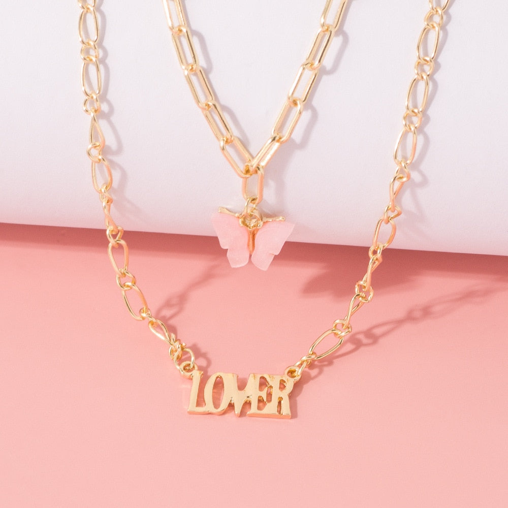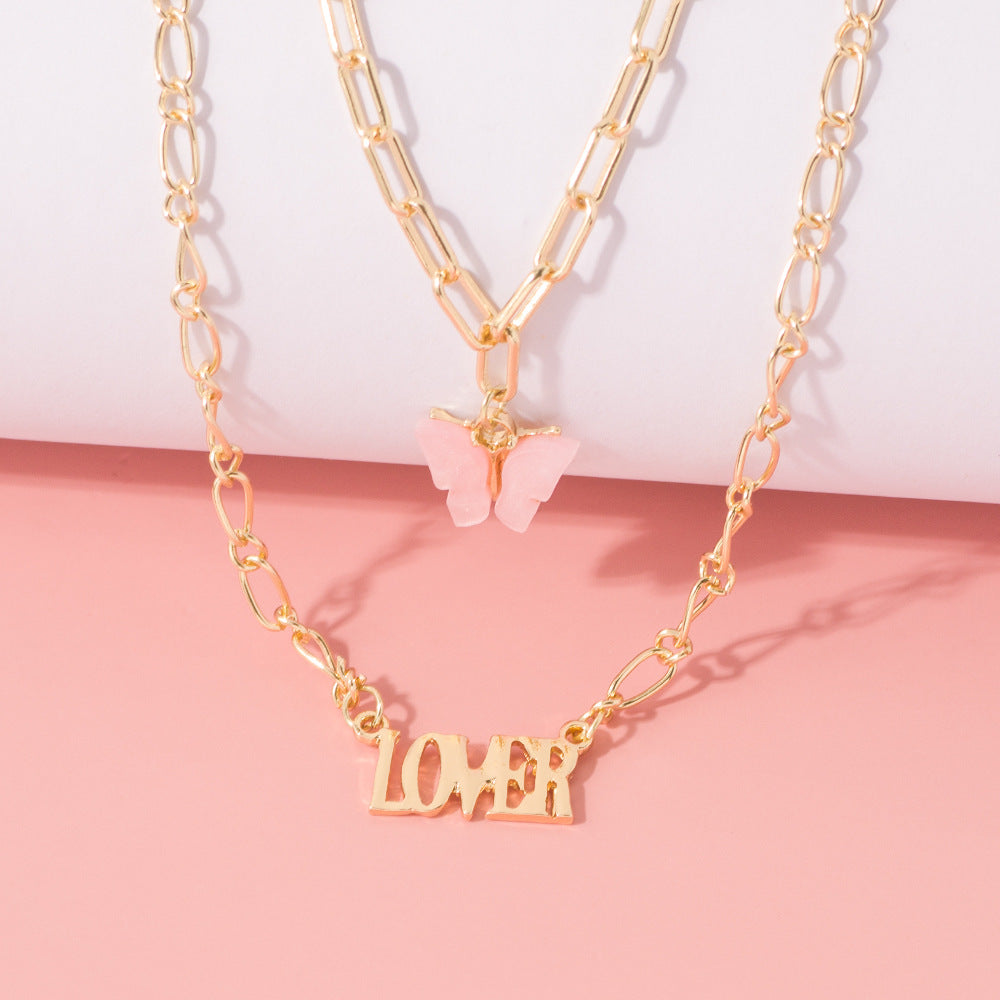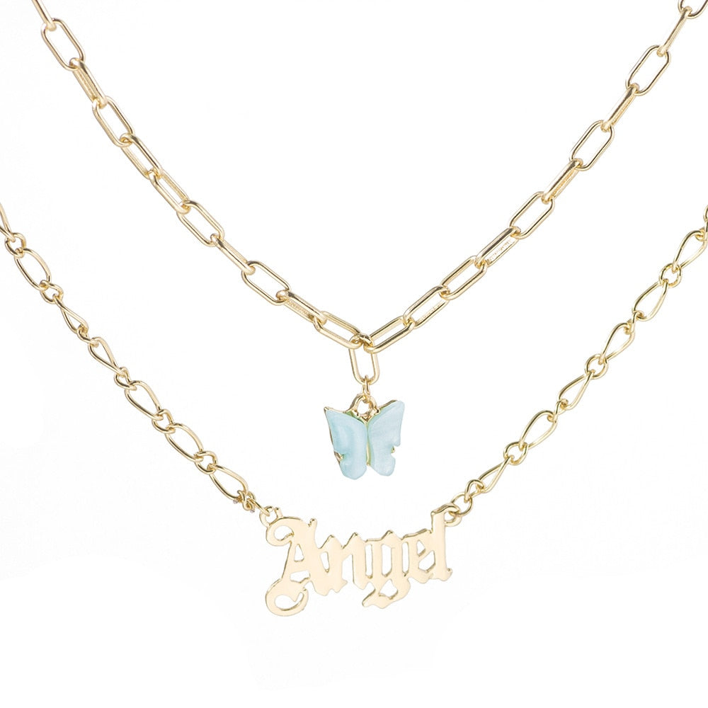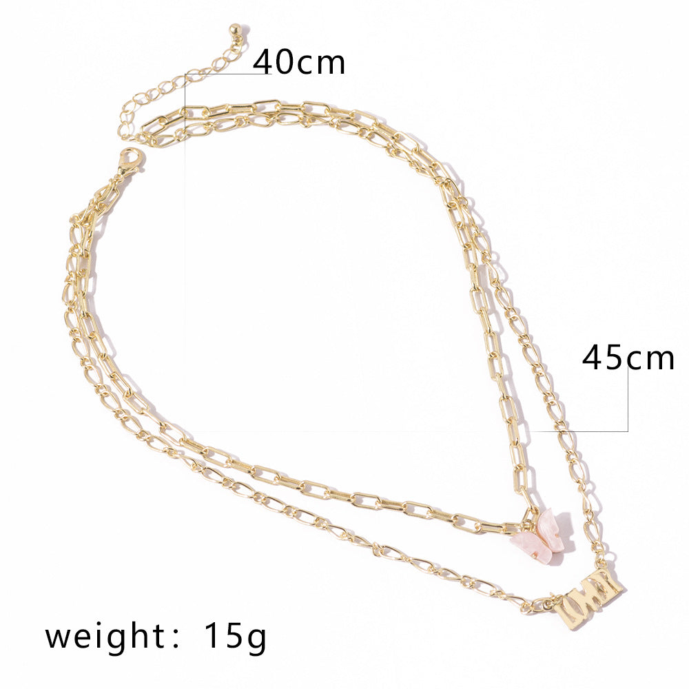Moda farfalla acrilica Old English Font pendenti Collana doppio strato acido acetico Collana per bambina Girocollo Gioielli di dichiarazione