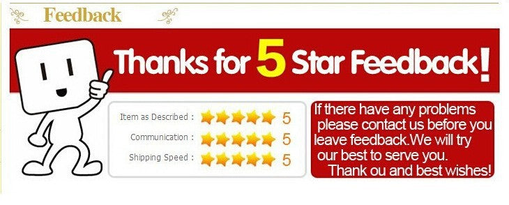 Please kindly leave us positive feedback once you\'resatisfied with your purchase.