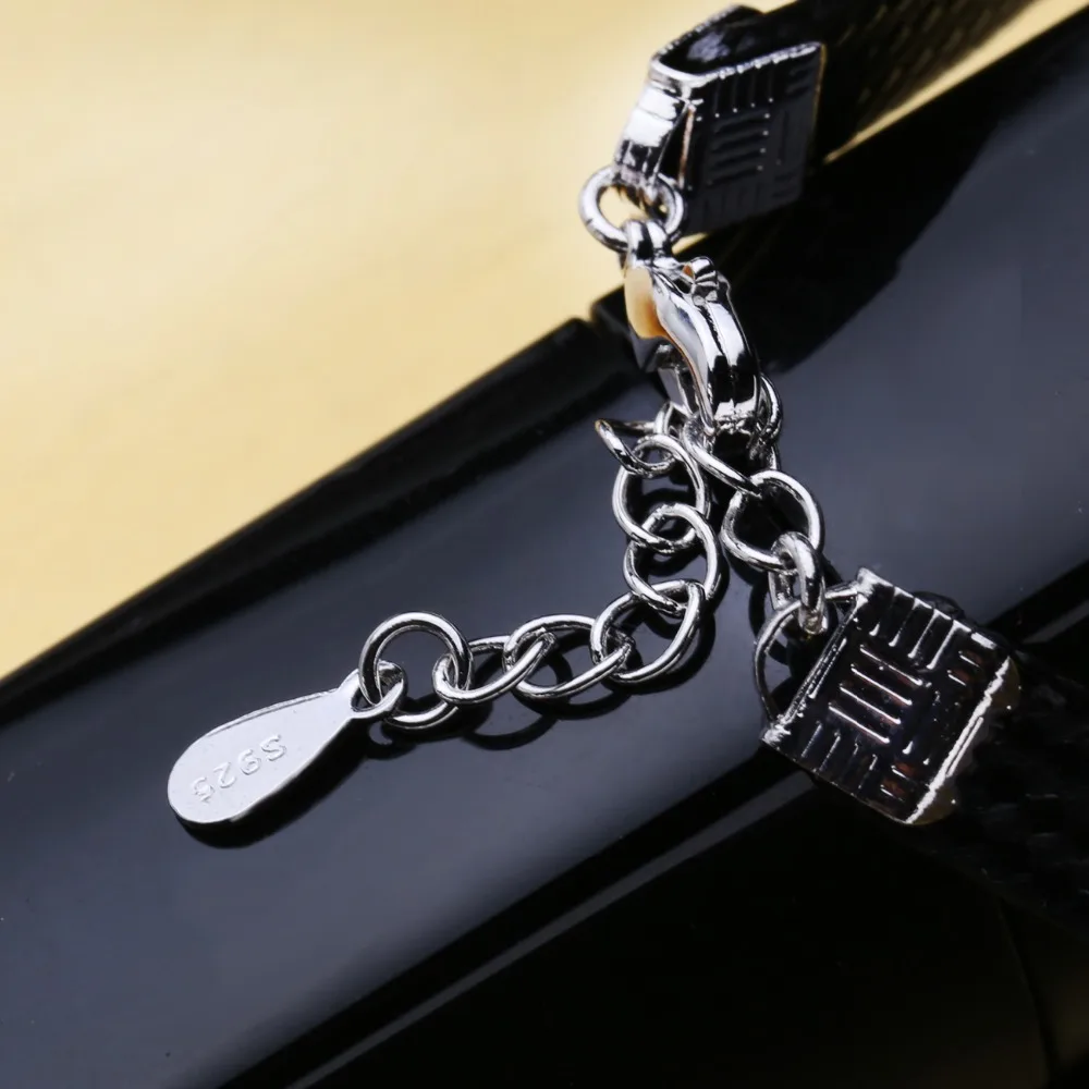 Collana girocollo di perle Moda donna Gabbia in argento sterling 925 Ciondolo con perla Stile classico Catena in corda nera