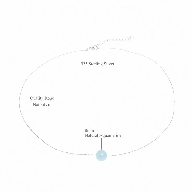 Gioielleria raffinata Marzo Birthstone Girocolli Collane Catena in argento 925 Corda Acquamarina naturale Pietre di cristallo Donne curative # O031N