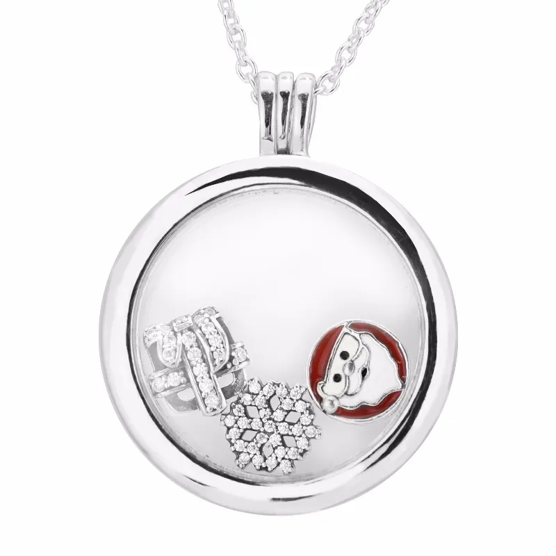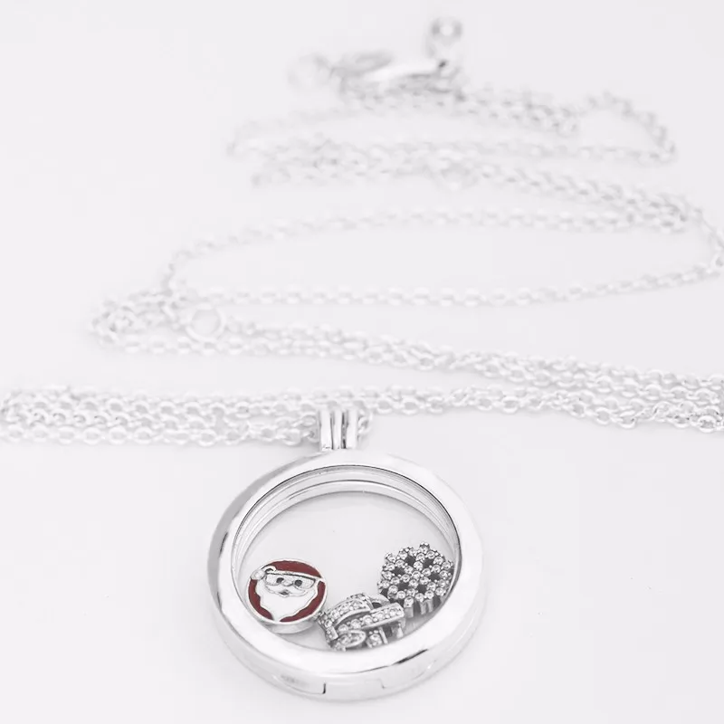 Ciondolo galleggiante Regalo di Natale Europa Collana con CZ trasparente da donna Argento sterling 925 per medaglione galleggiante di gioielli di moda da donna