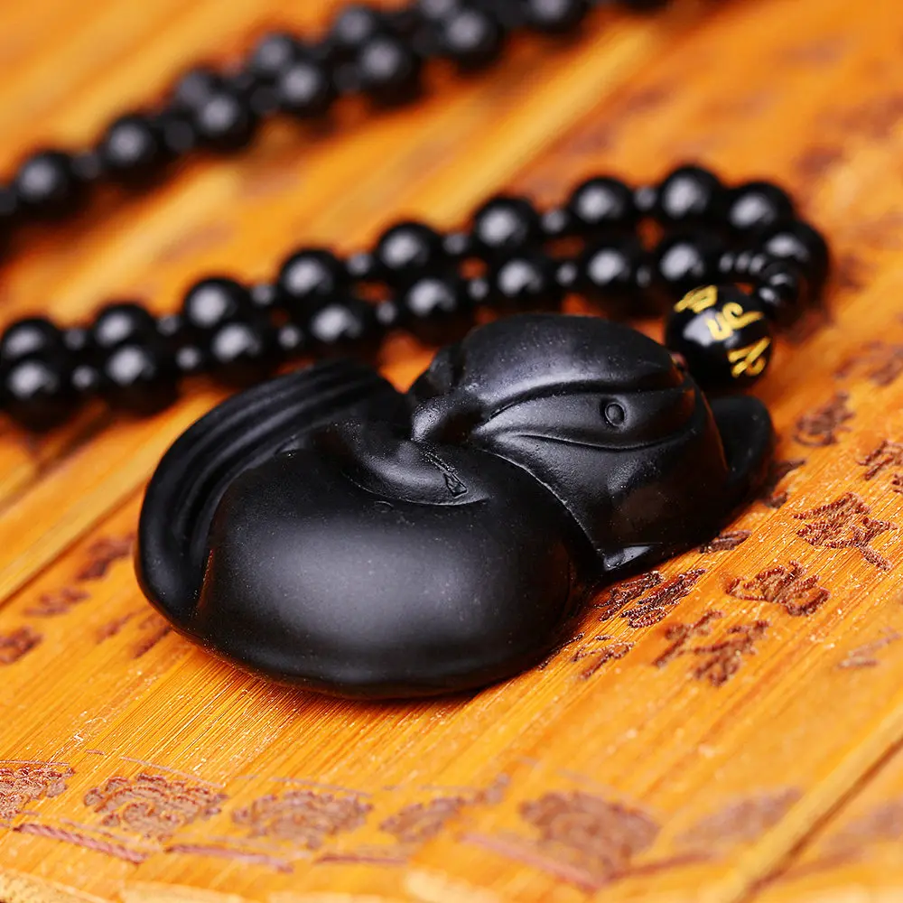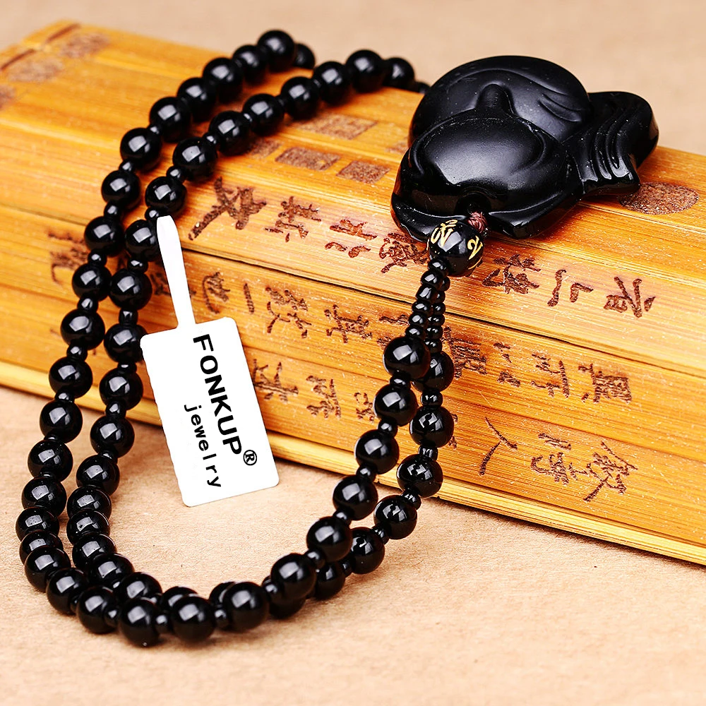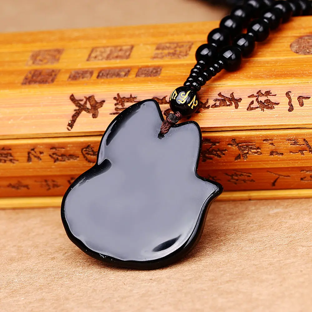 Men Long Necklace Women Hyperbole Jewellery Fox Pendant Obsidian Bead Chain Accessories Simple Prayer Gioielli Original