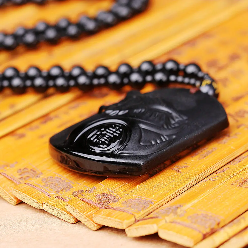 Obsidian Necklace Men Long Jewelry Animal Pendant Fashion Sweater Chain Beads Creativity Wolf Head Gioielli Prayer Lucky