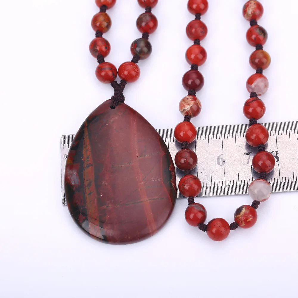Red Jasper Necklace Statement Women Jewelry Bead Chain Pendant Stone Sautoir Perles Long Femme Trendy Water Drop Sieraden