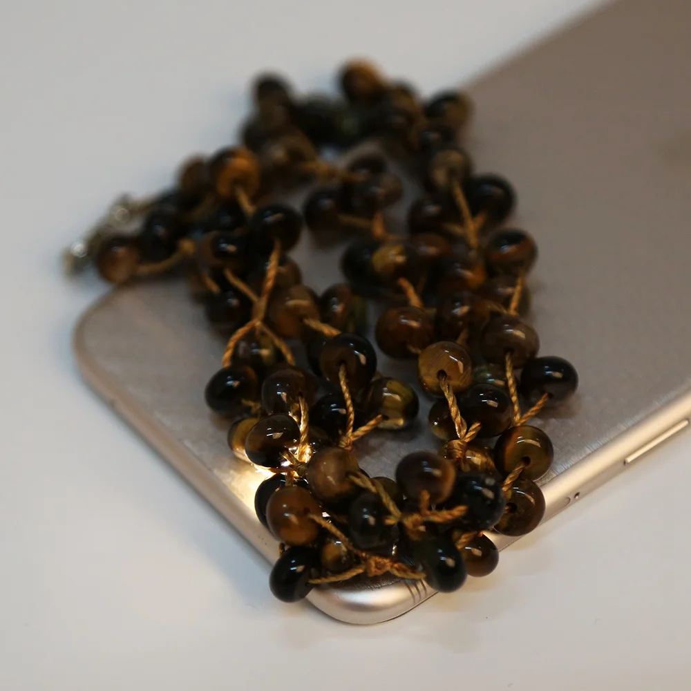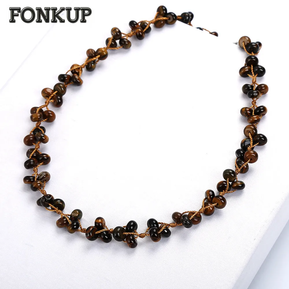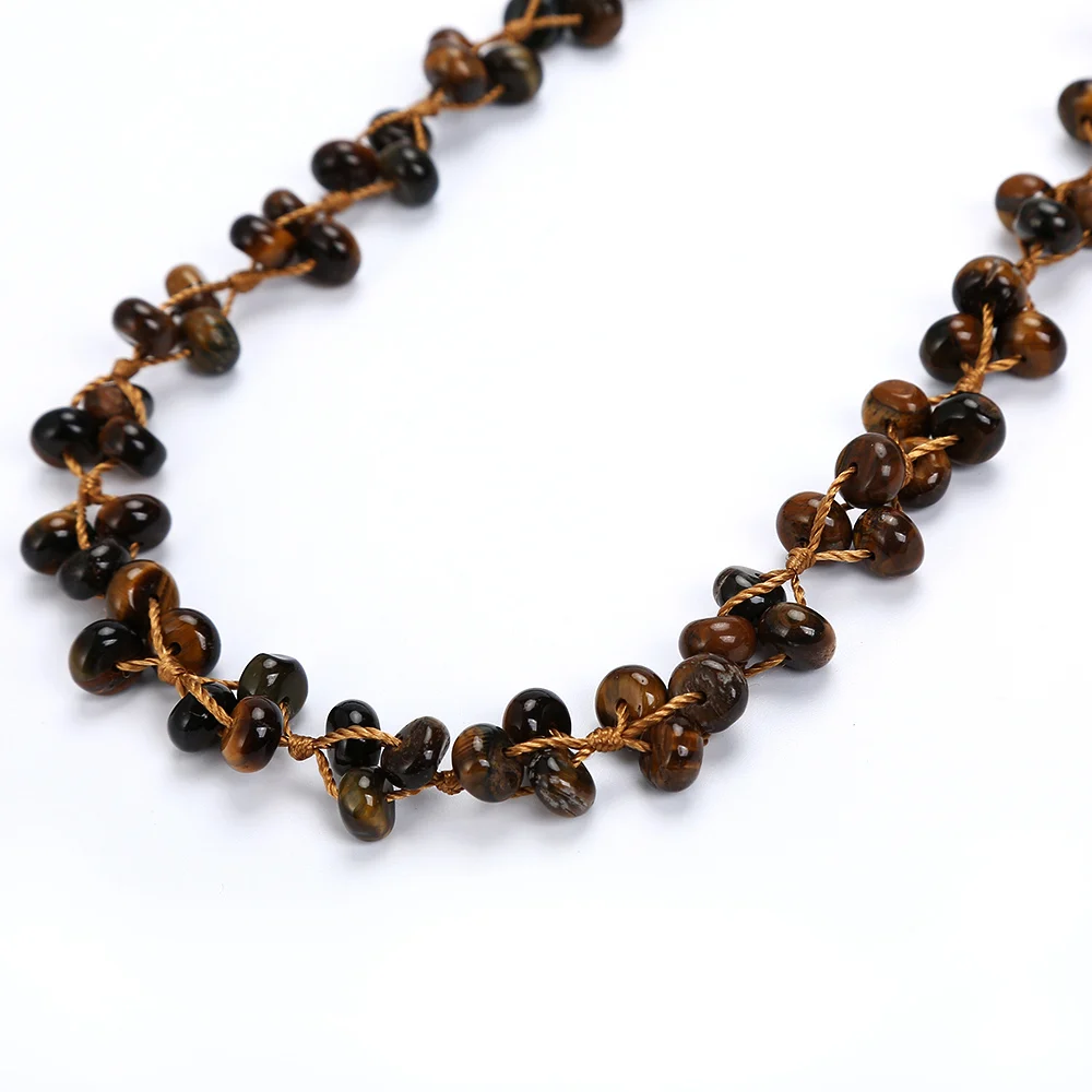 Collana in pietra occhio di tigre Catene di perline Gioielli corti da donna Ornamenti in pietre preziose Borsa da uomo geometrica Sautoir Bayan Kolye