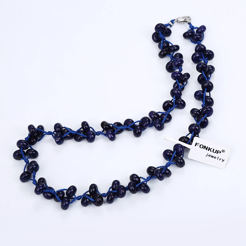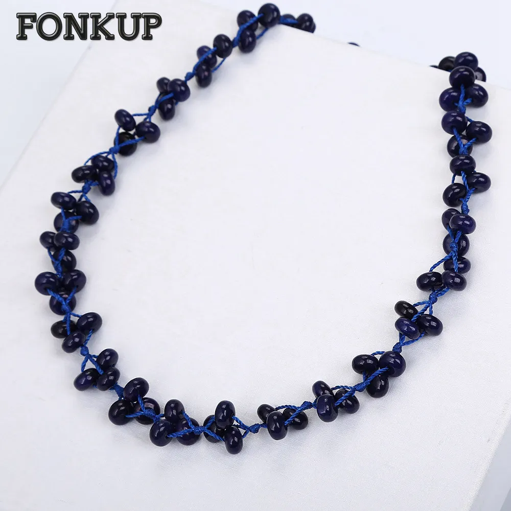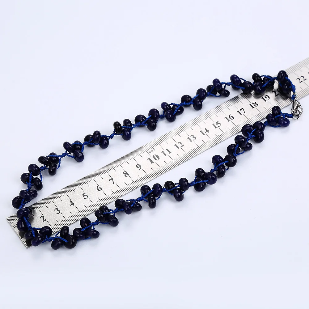 Collana corta da donna Lapislazzuli Catene di perline Gioielli da uomo etnici Matrimonio Blu Perline Palla Corda intrecciata Catena Bijoux Femme