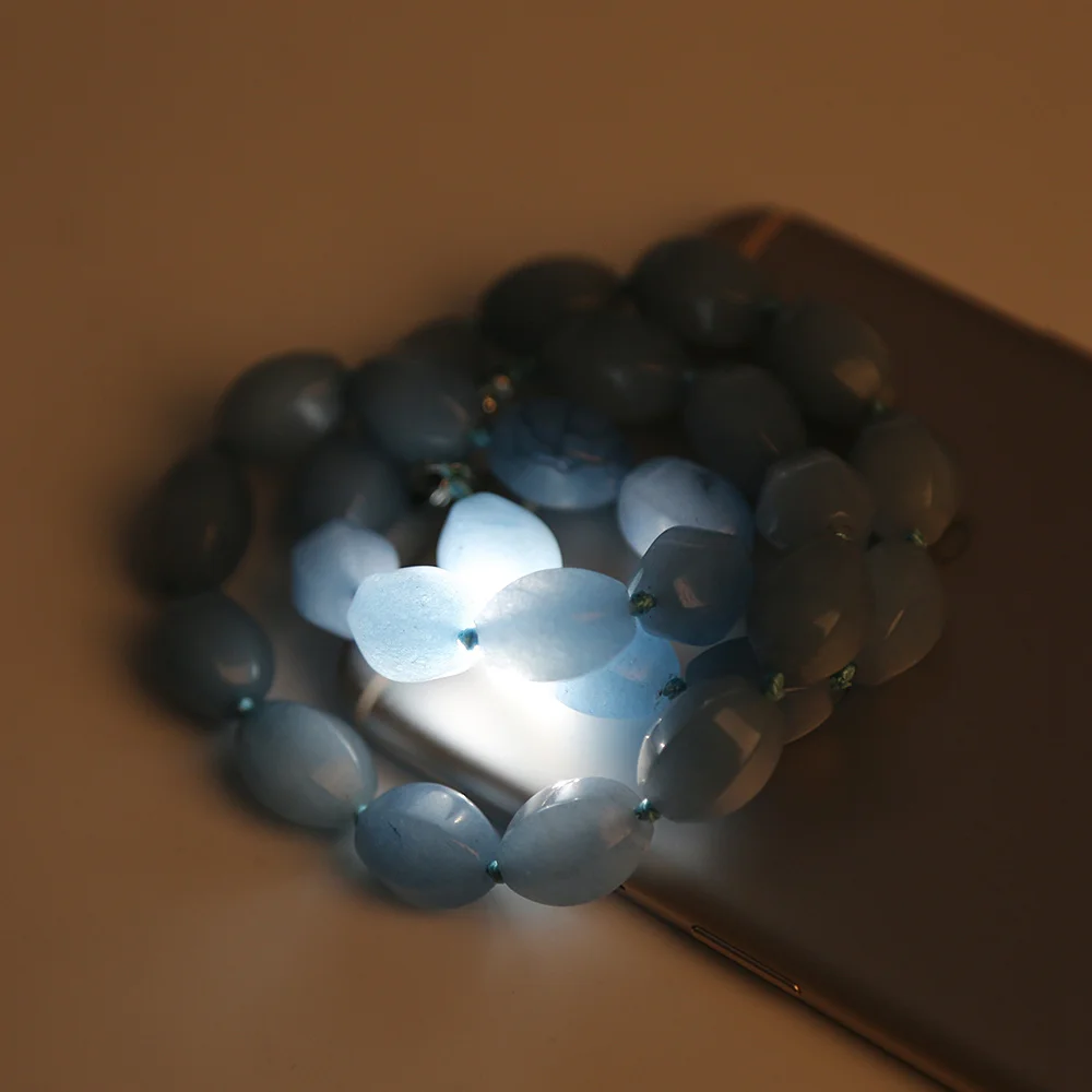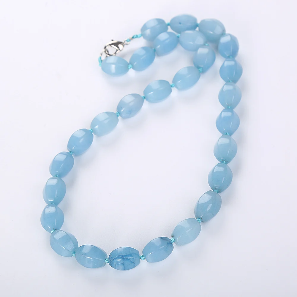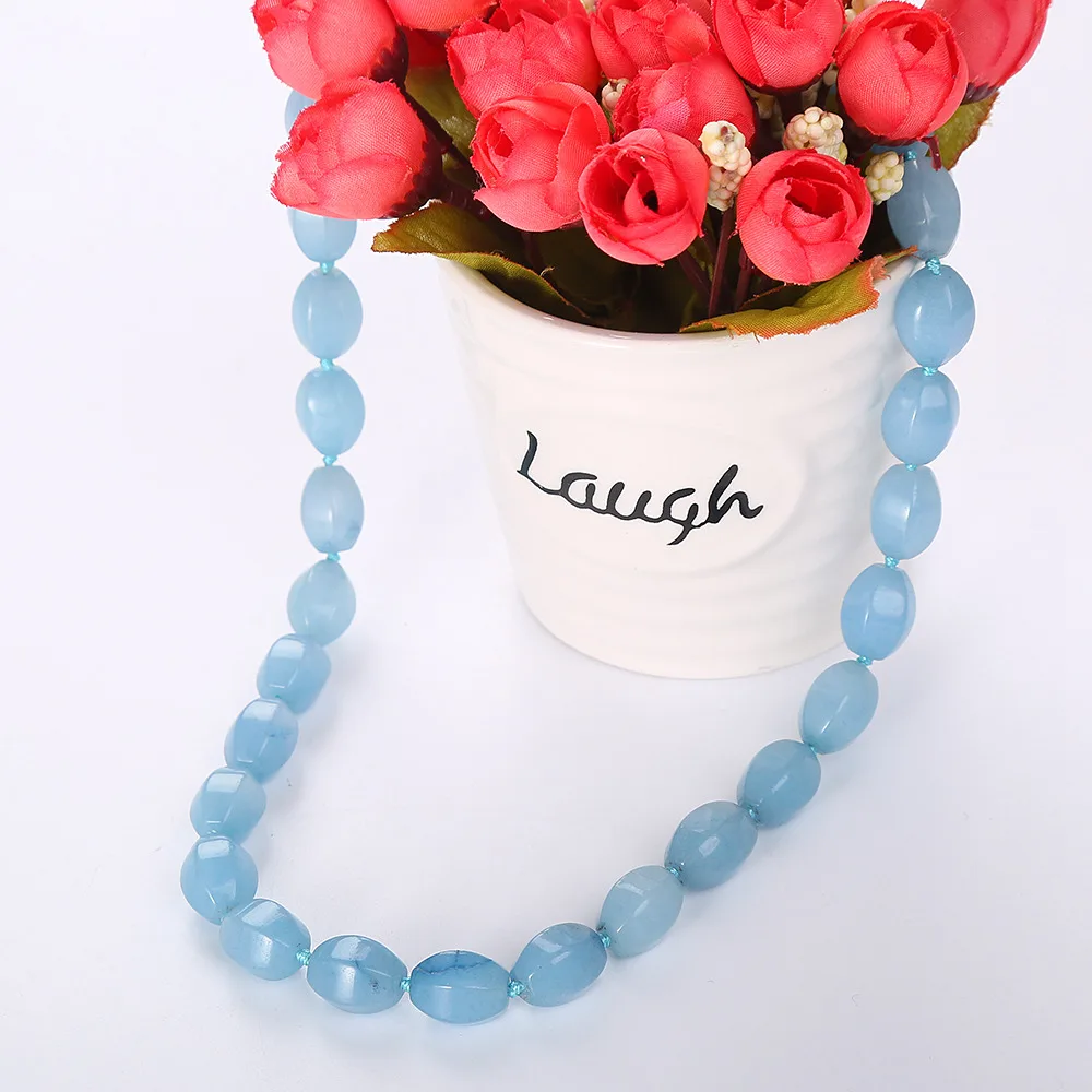 Forkup Aquamarine Necklace Bohemia Women Clavicular Chain Ladies Sautoir Round Beadwork Rope Chain Multilayer Crystal Beads Yoga