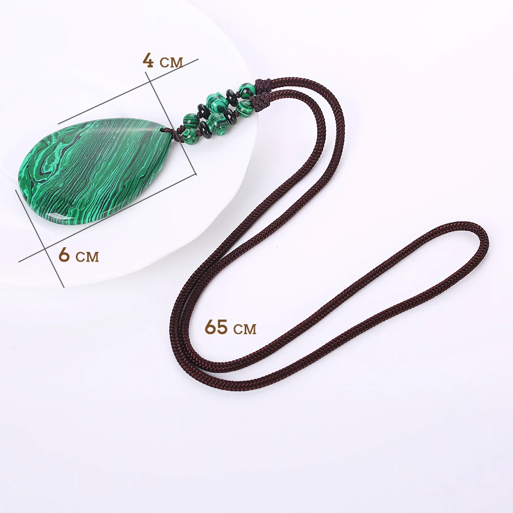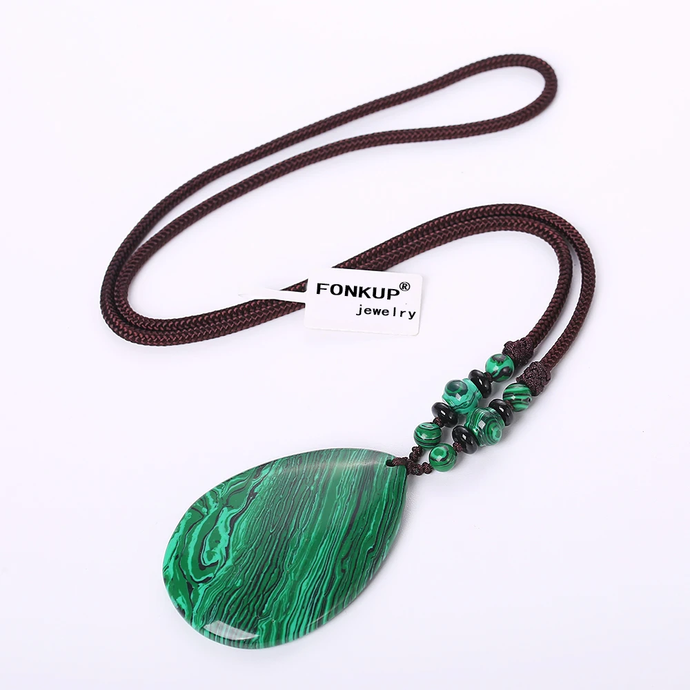 Forkup Ethnic Women Necklace Natural Malachite Pendant Water Drop Stone Beads Jewellery Party Rope Chain Horoscope Fashion Reiki
